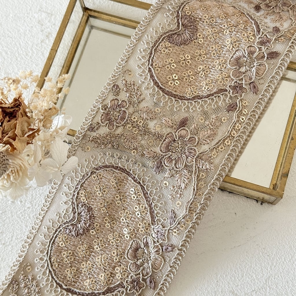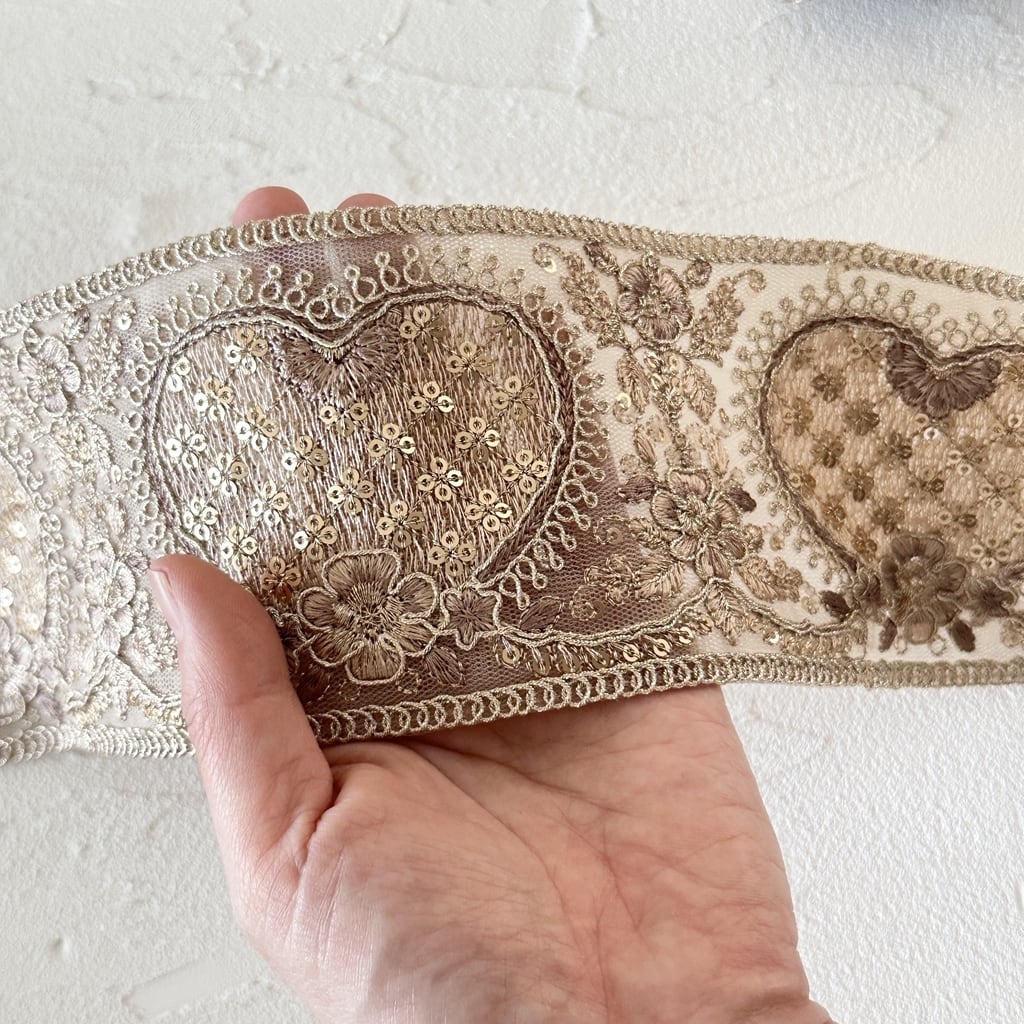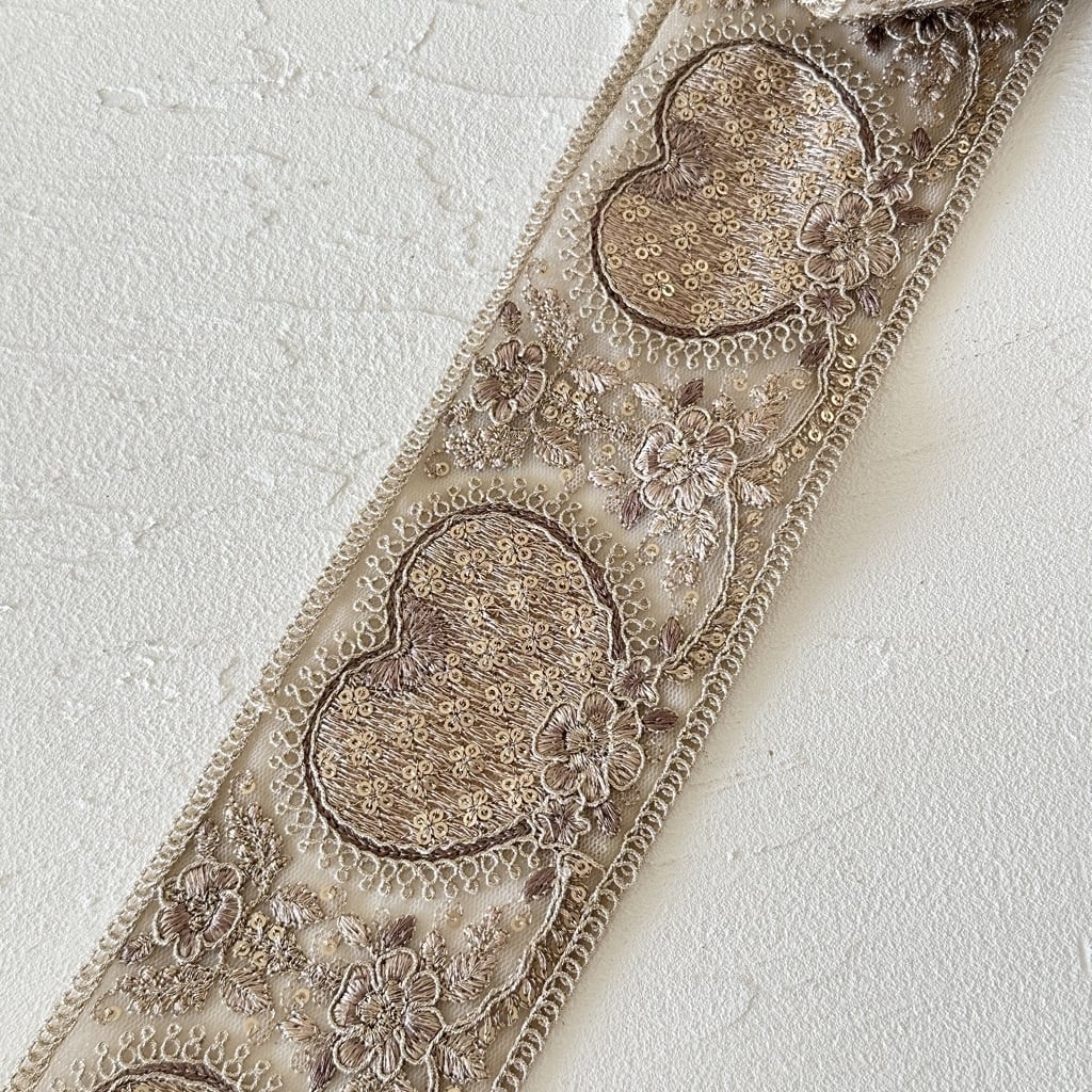 ハートワイド [ベージュ]インド刺繍リボン 3639