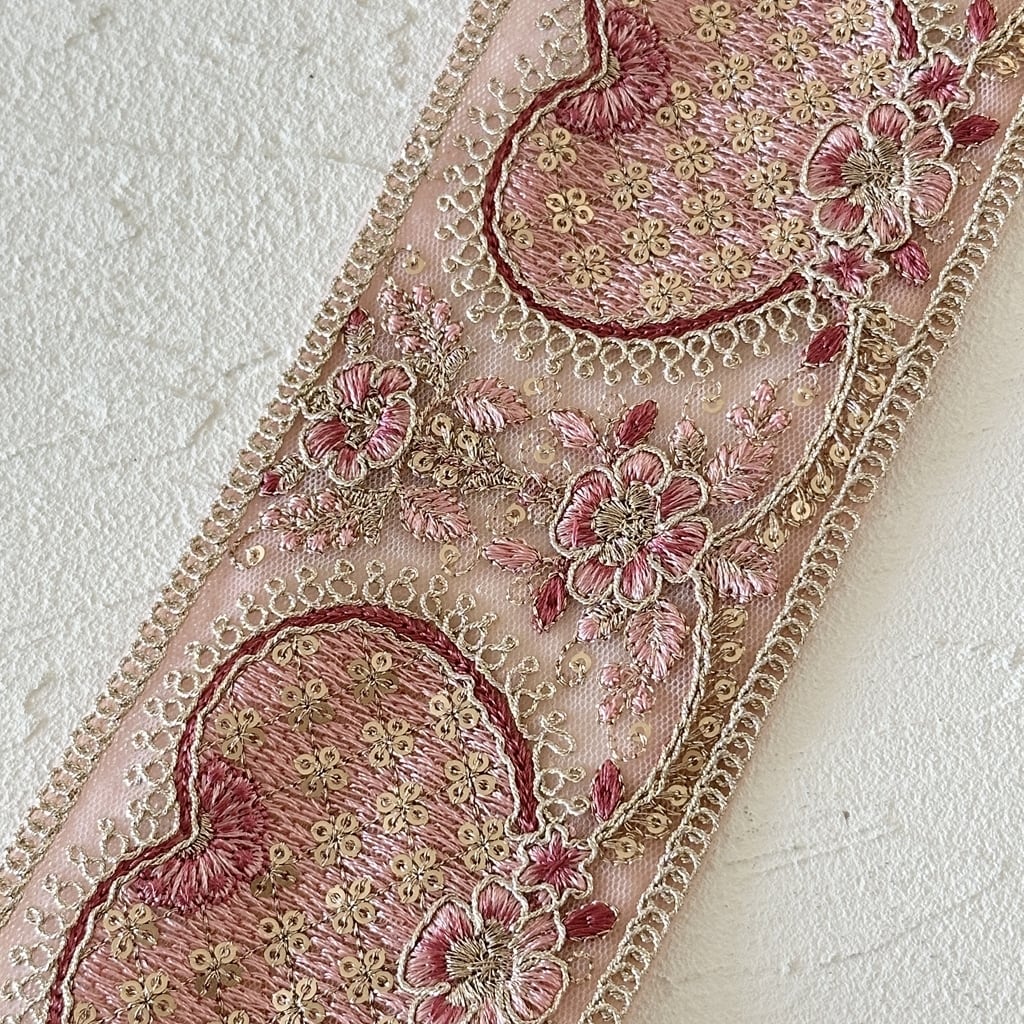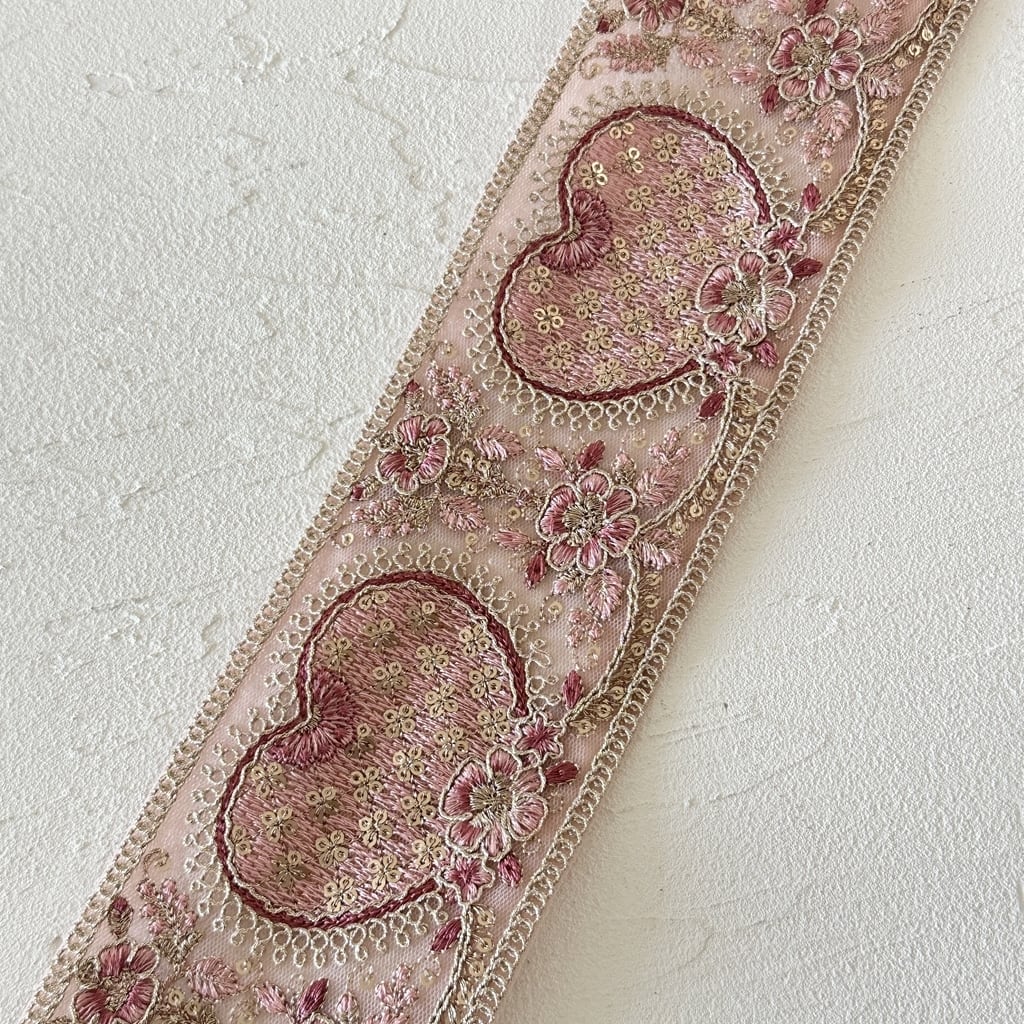 ハートワイド [くすみピンク]インド刺繍リボン 3640