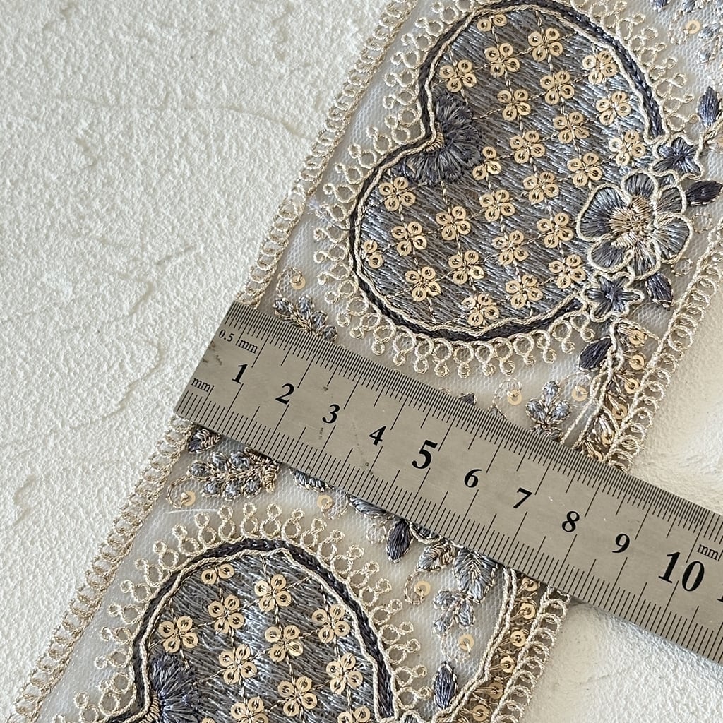 ハートワイド [シックブルー]インド刺繍リボン 3642