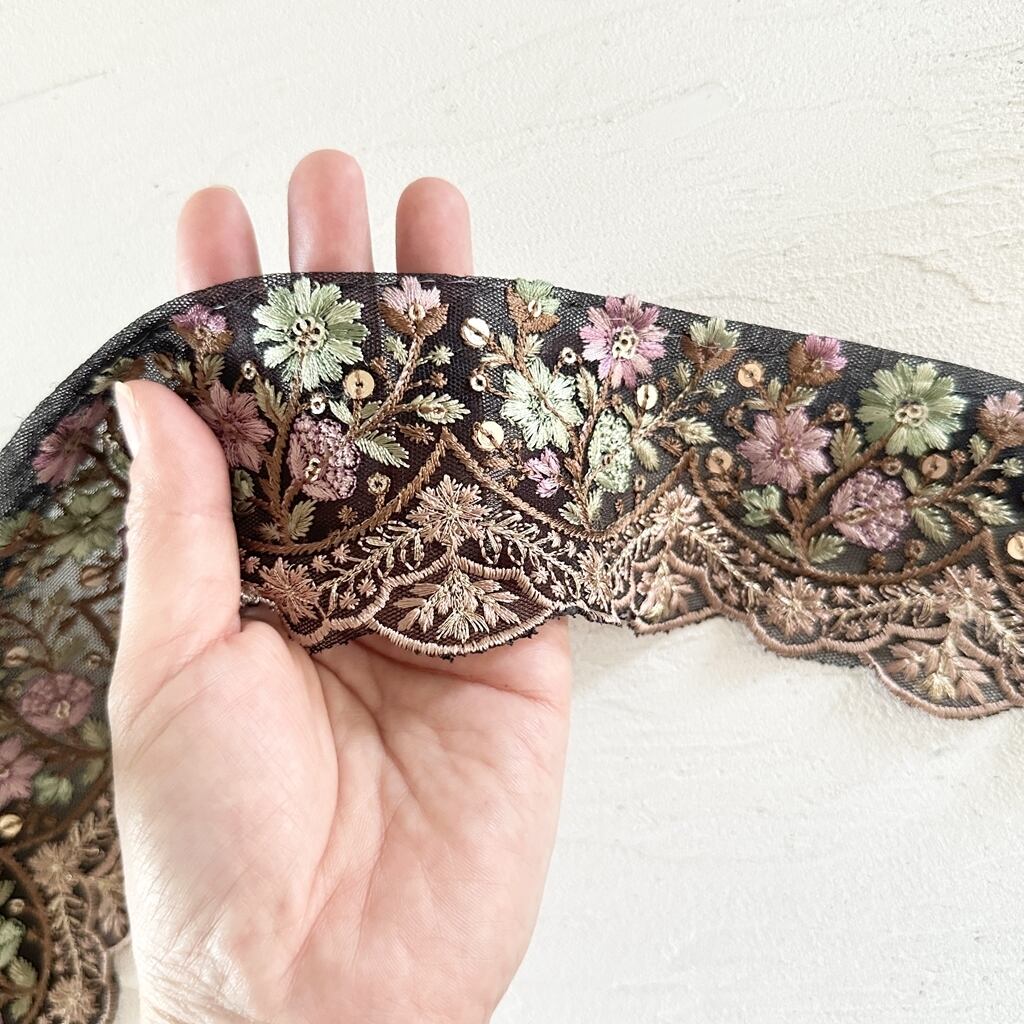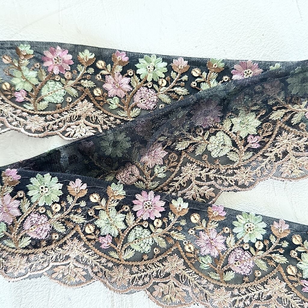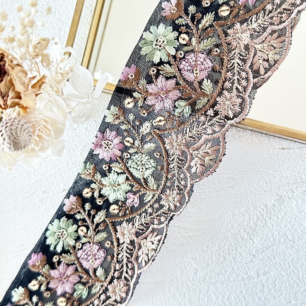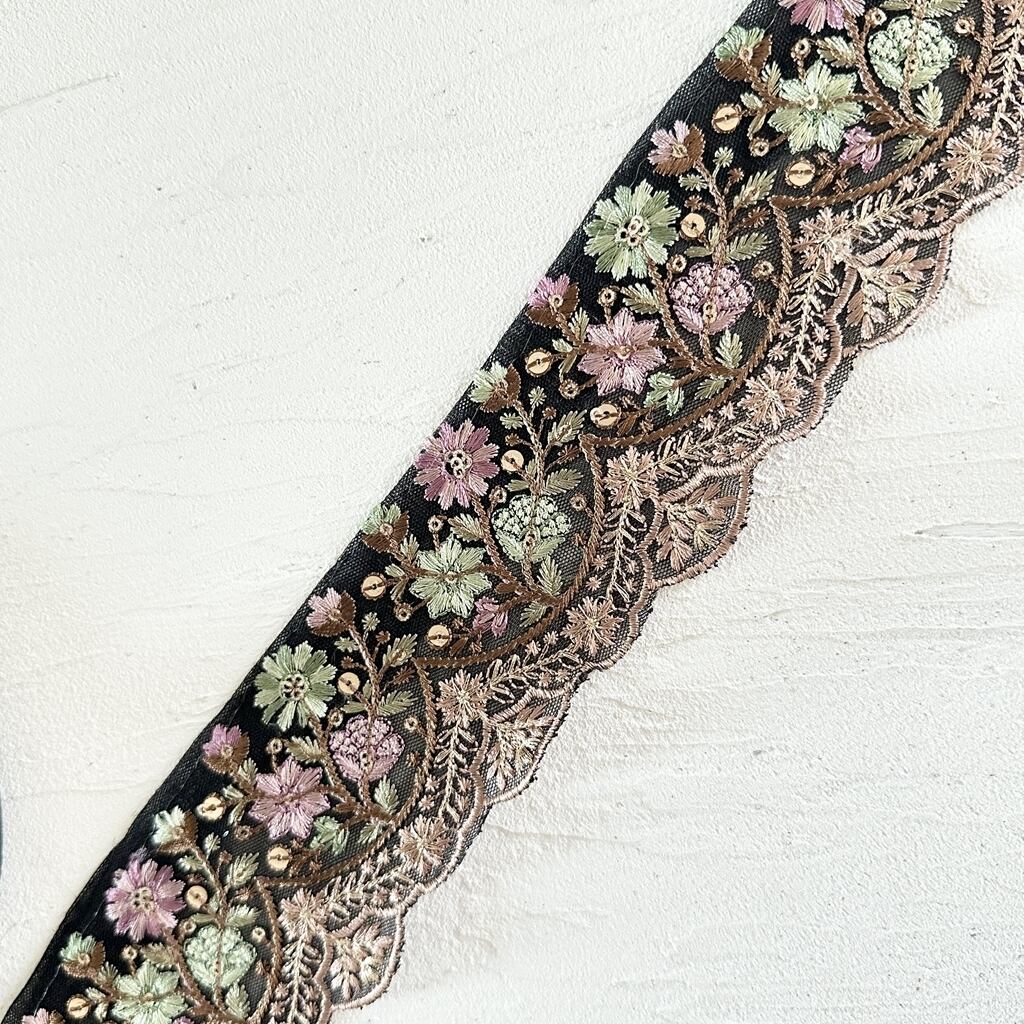 1ロール フレッシュモーメント [ブラック]インド刺繍リボン 3154-1R