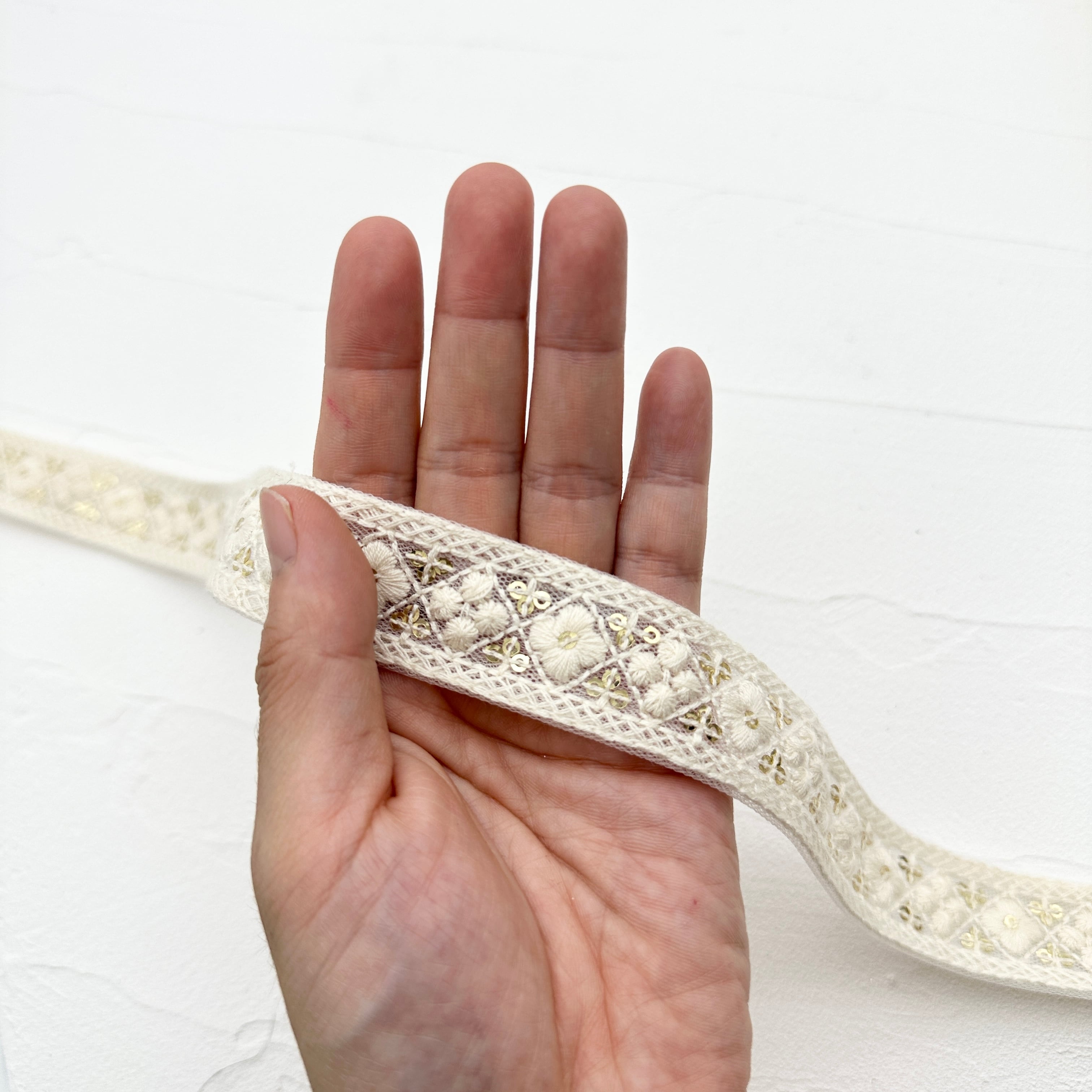 インド刺繍リボン ホワイトライン[ホワイト] 1116