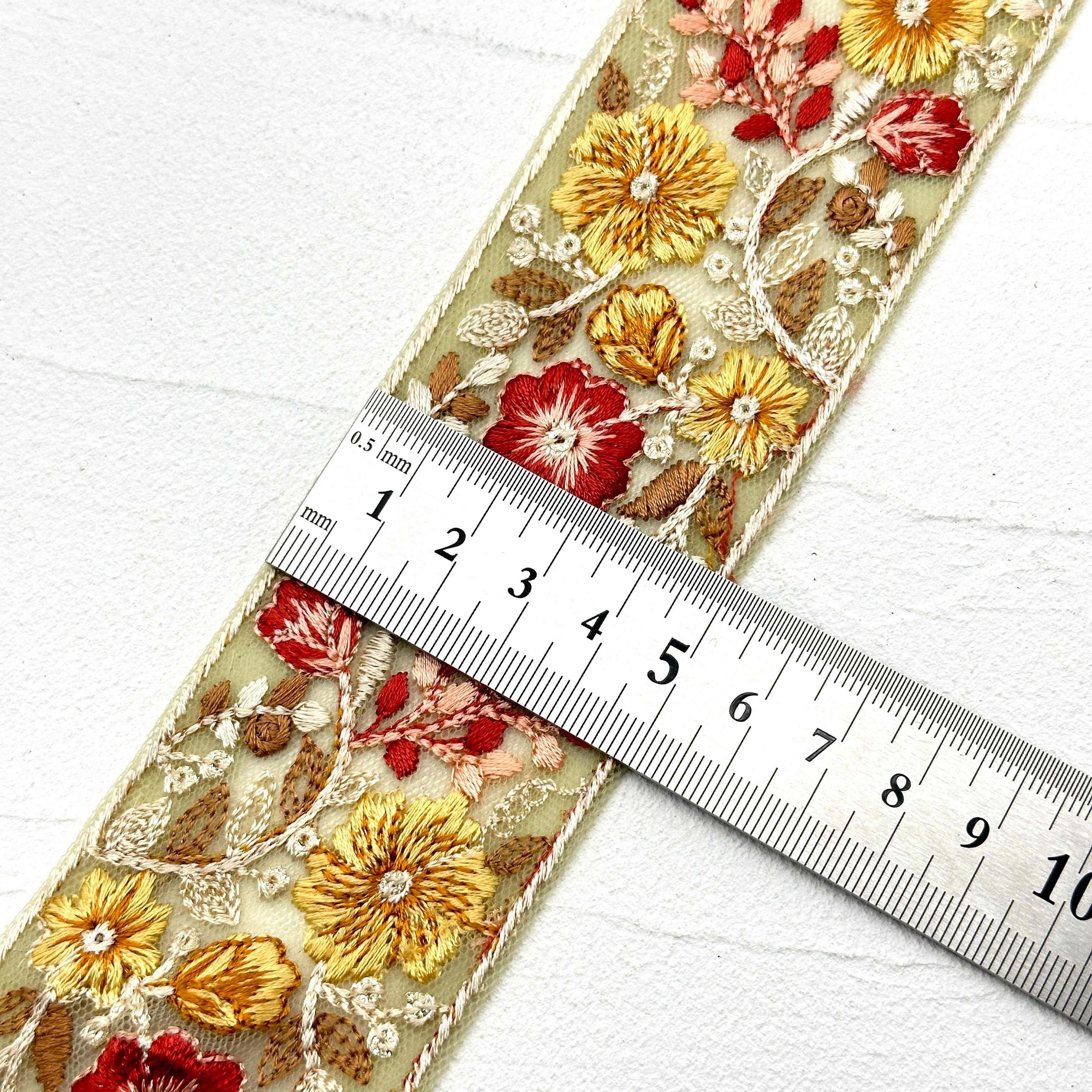 フローラルモーメント [レッドイエロー]インド刺繍リボン 1210