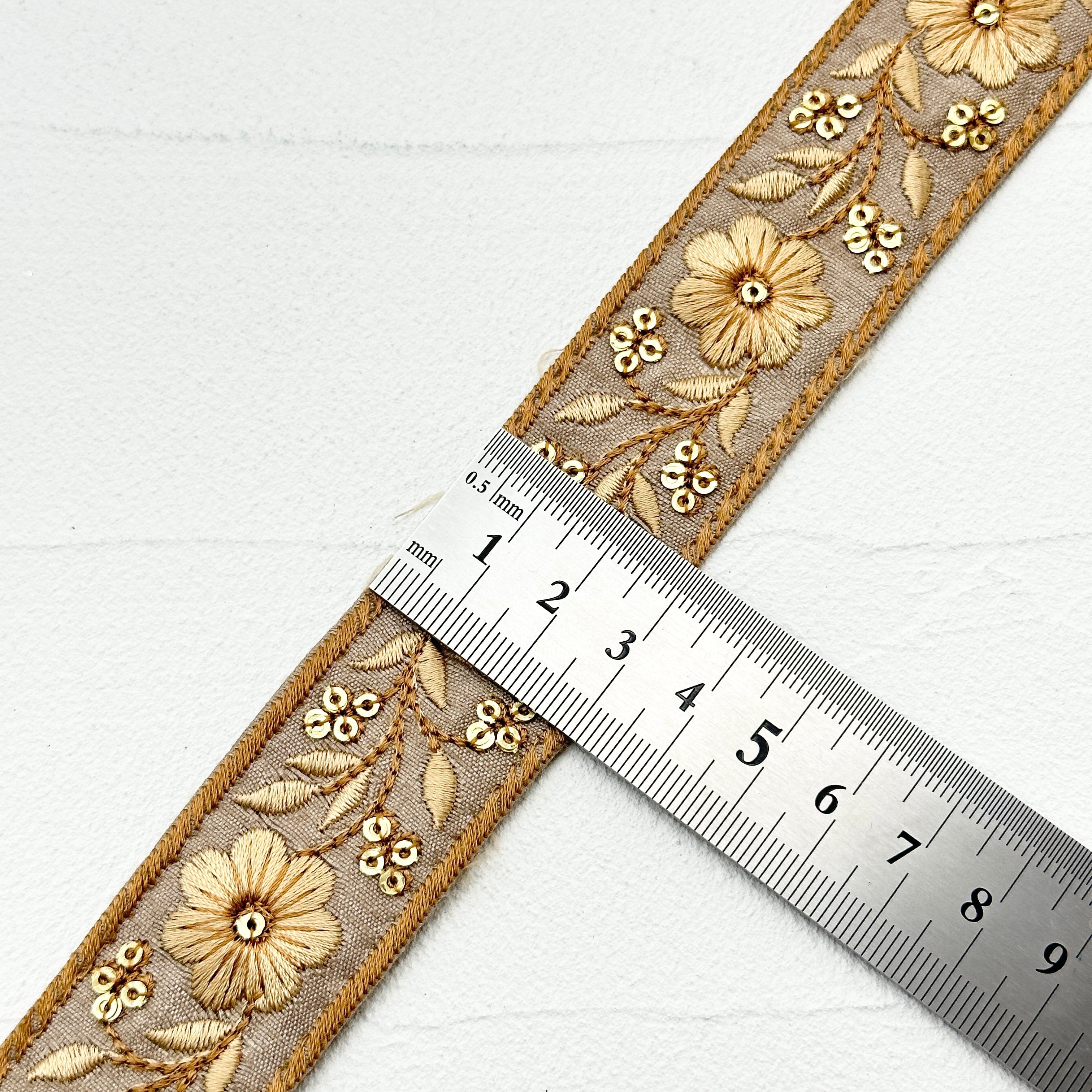 シックシンフォニー[ベージュ]インド刺繍リボン 1190