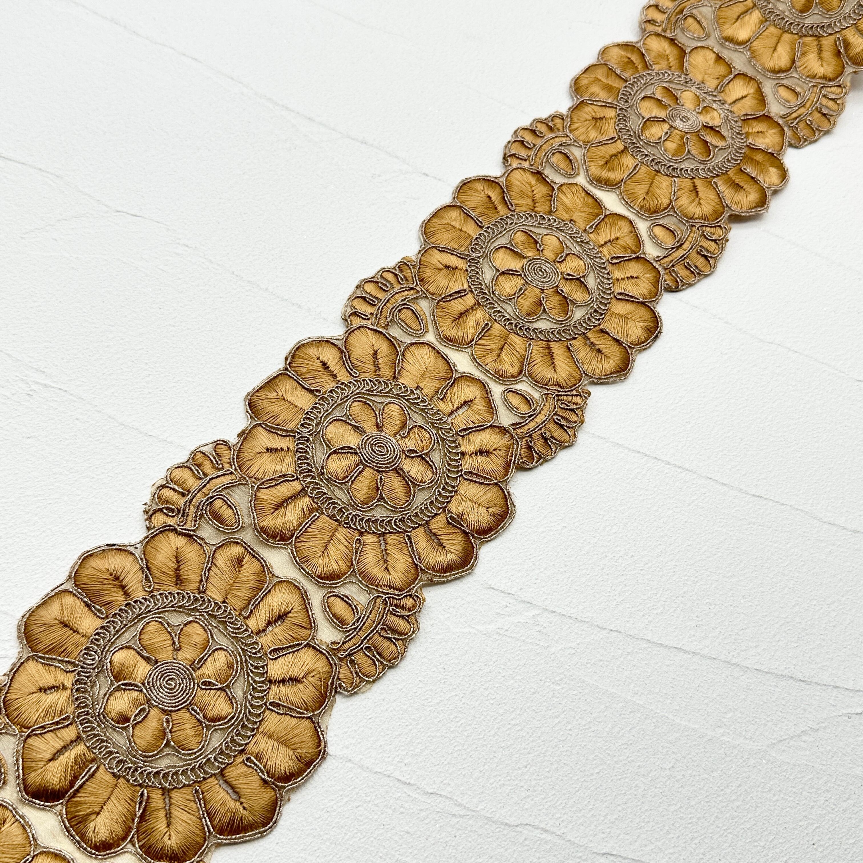 ロイヤルエレガント [キャメル]インド刺繍リボン 1293