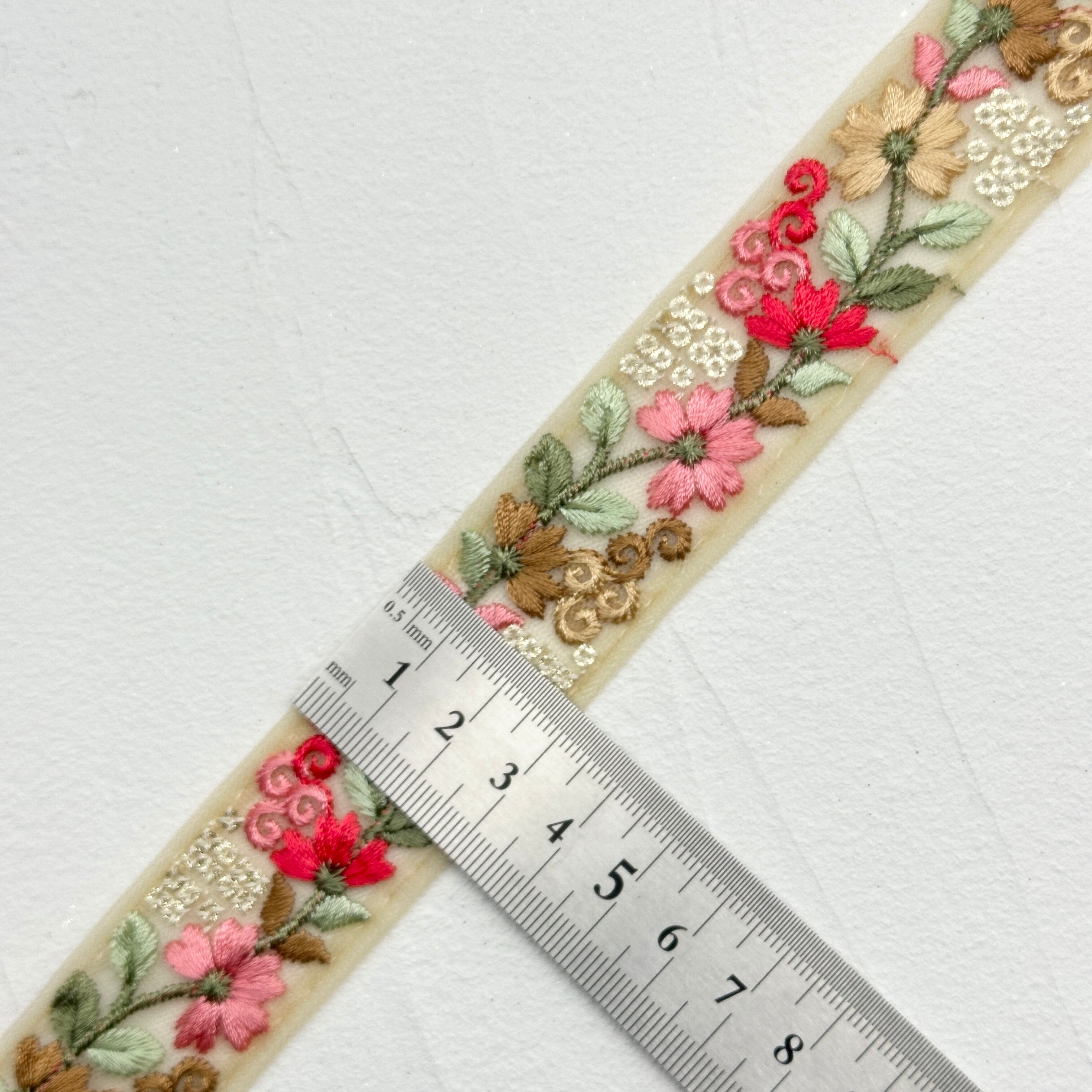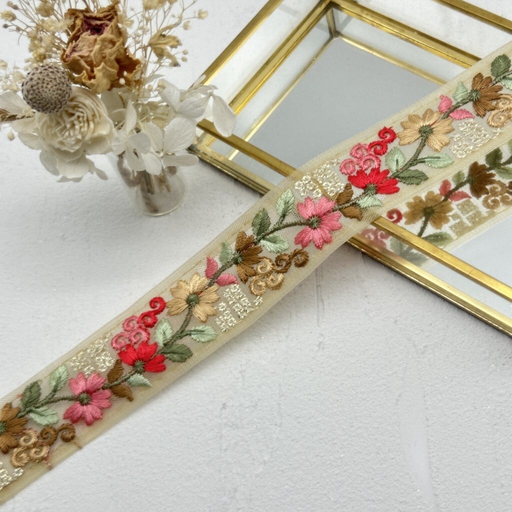 インド刺繍リボンは、細かい刺繍が施されていて色も鮮やかなリボンです。