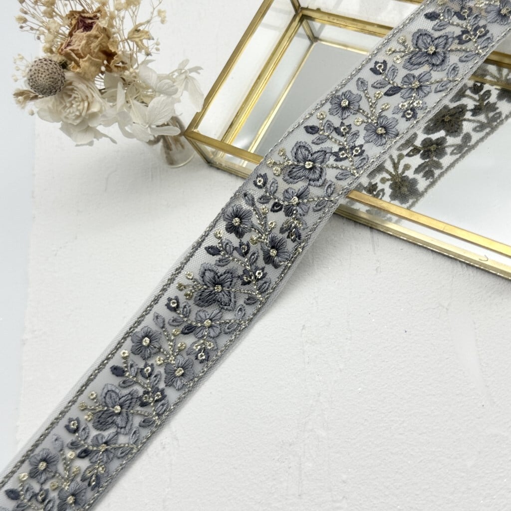 スプリンクル [くすみブルー]インド刺繍リボン 1390