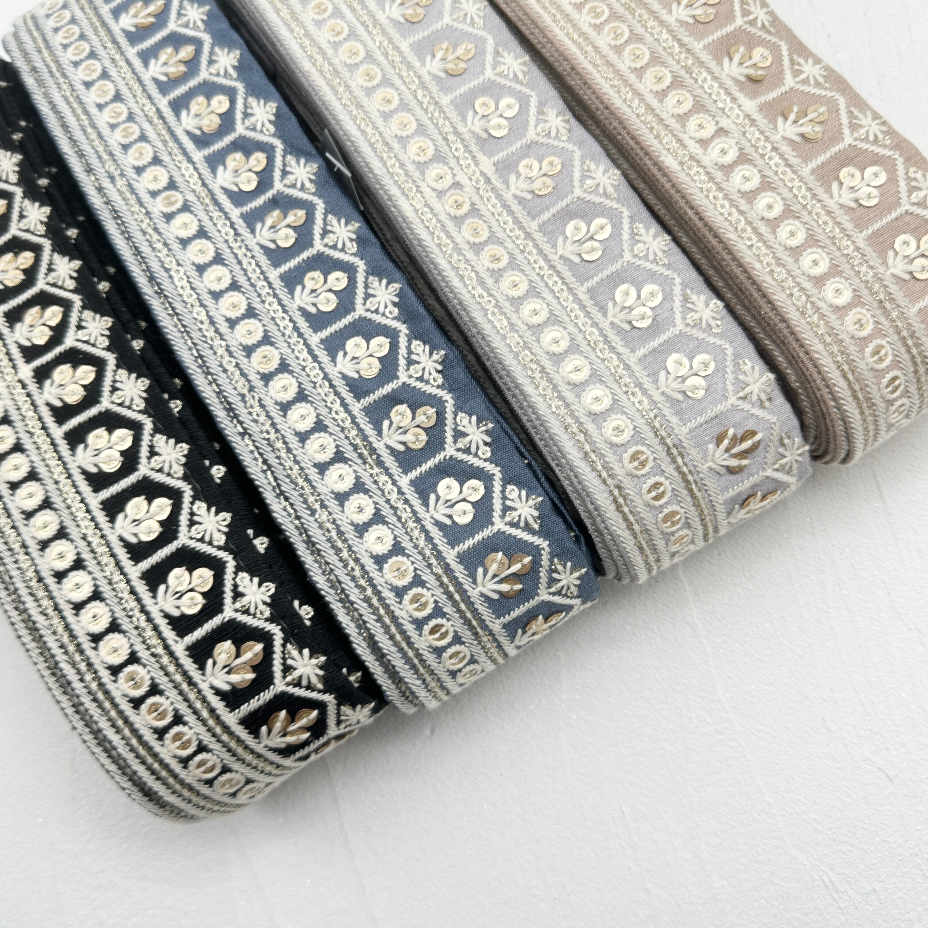 インド刺繍リボンは、細かい刺繍が施されていて色も鮮やかなリボンです。