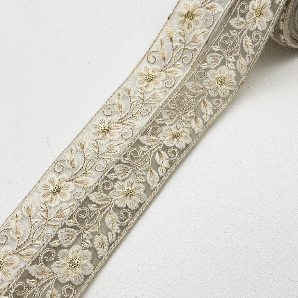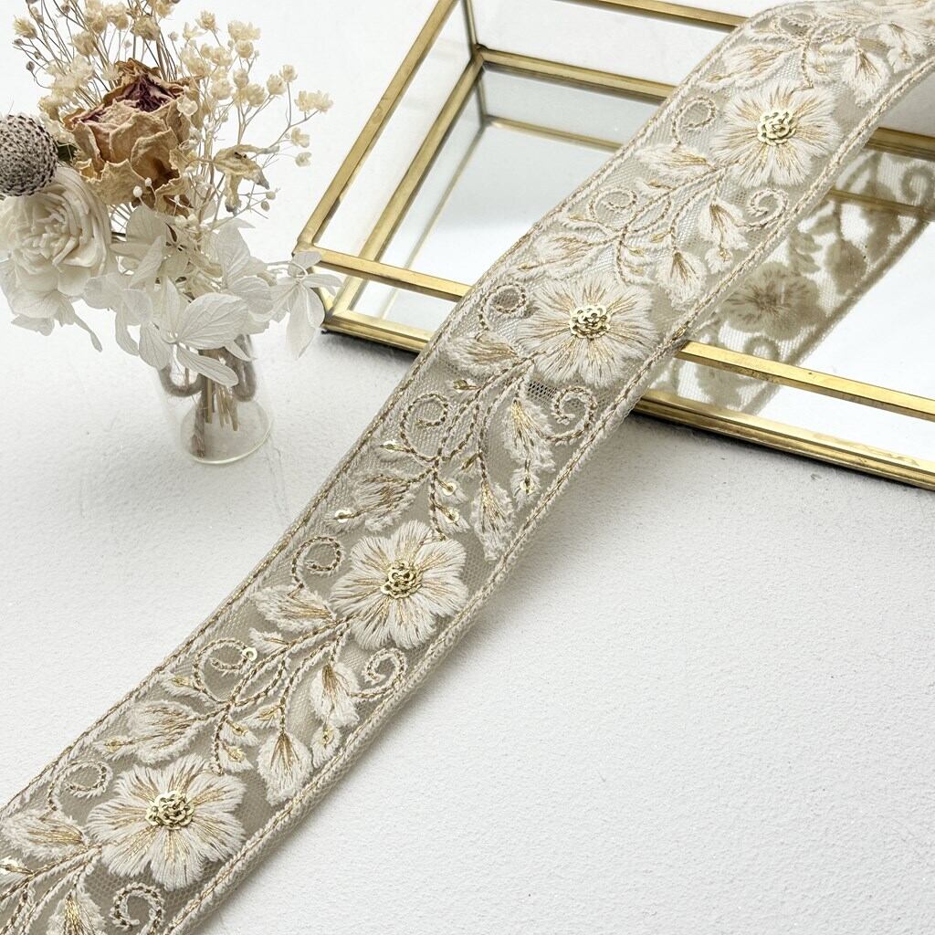 フロレス [モカベージュ]インド刺繍リボン 1420