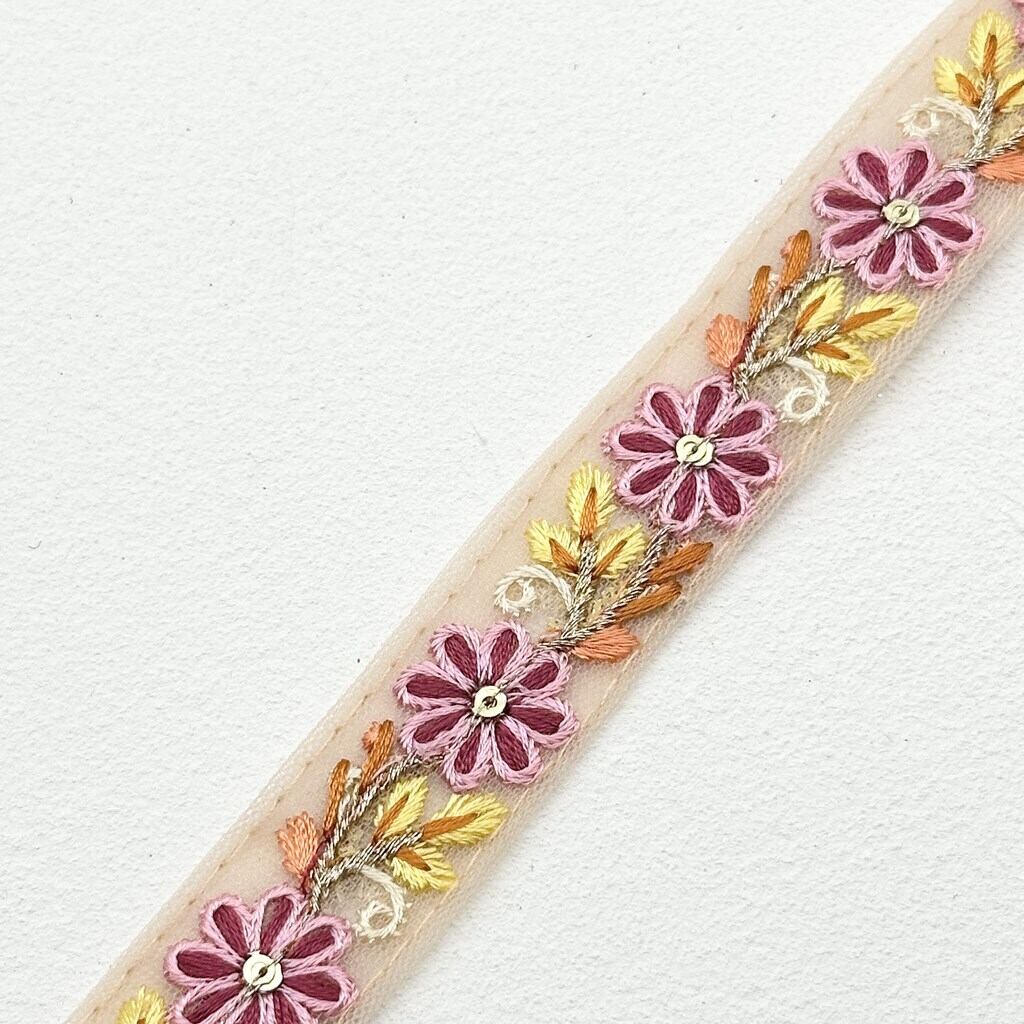 インド刺繍リボンは、細かい刺繍が施されていて色も鮮やかなリボンです。