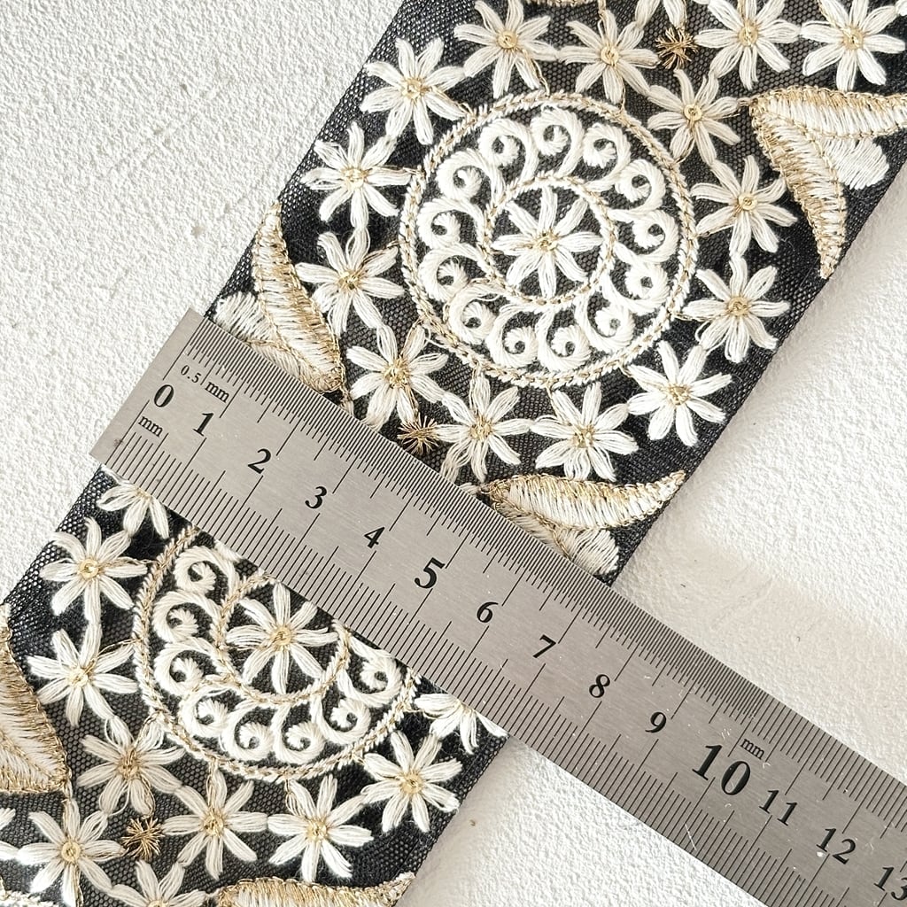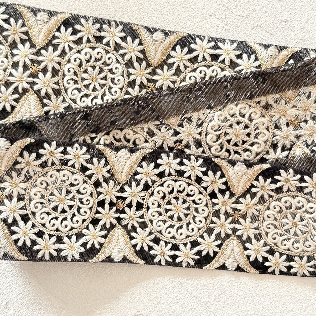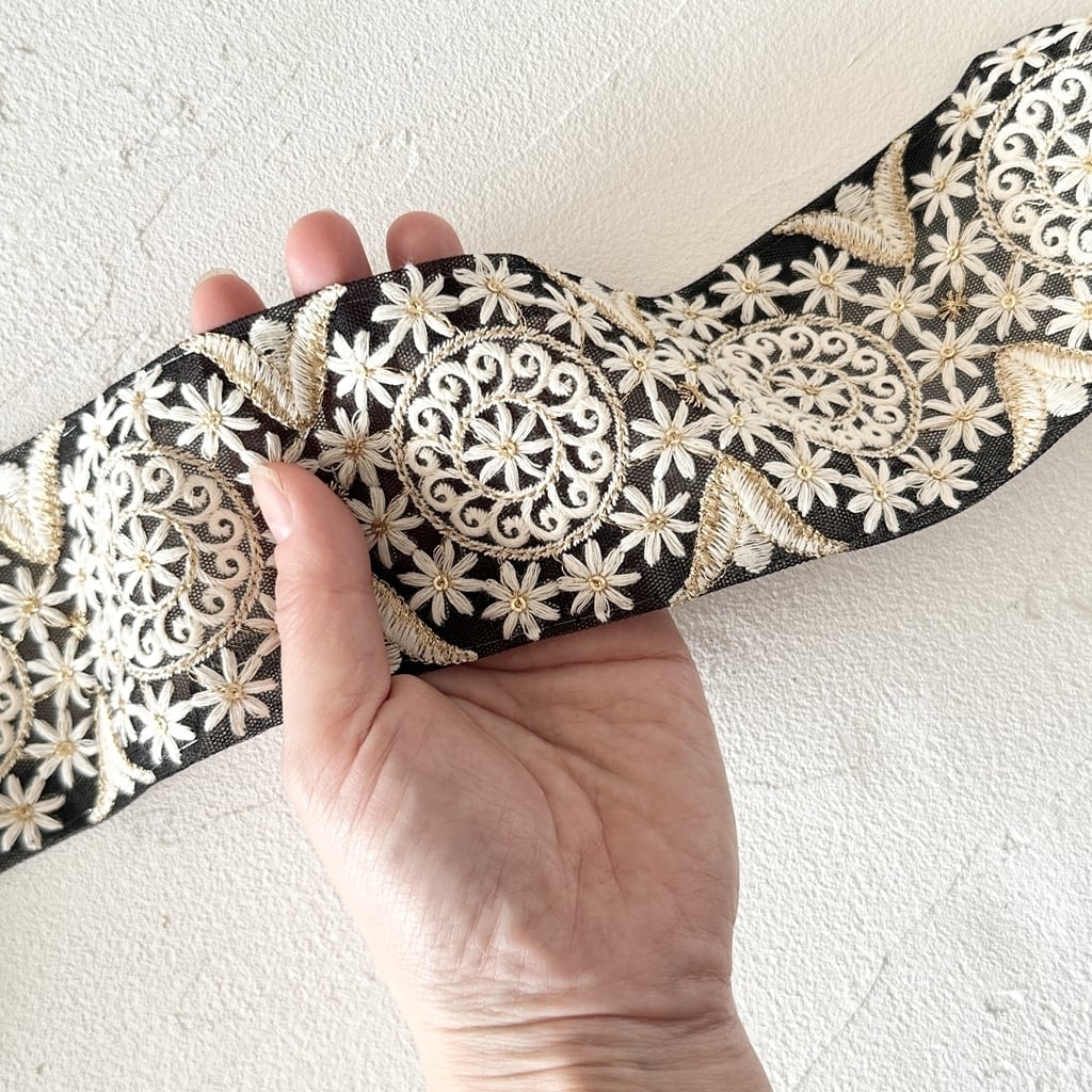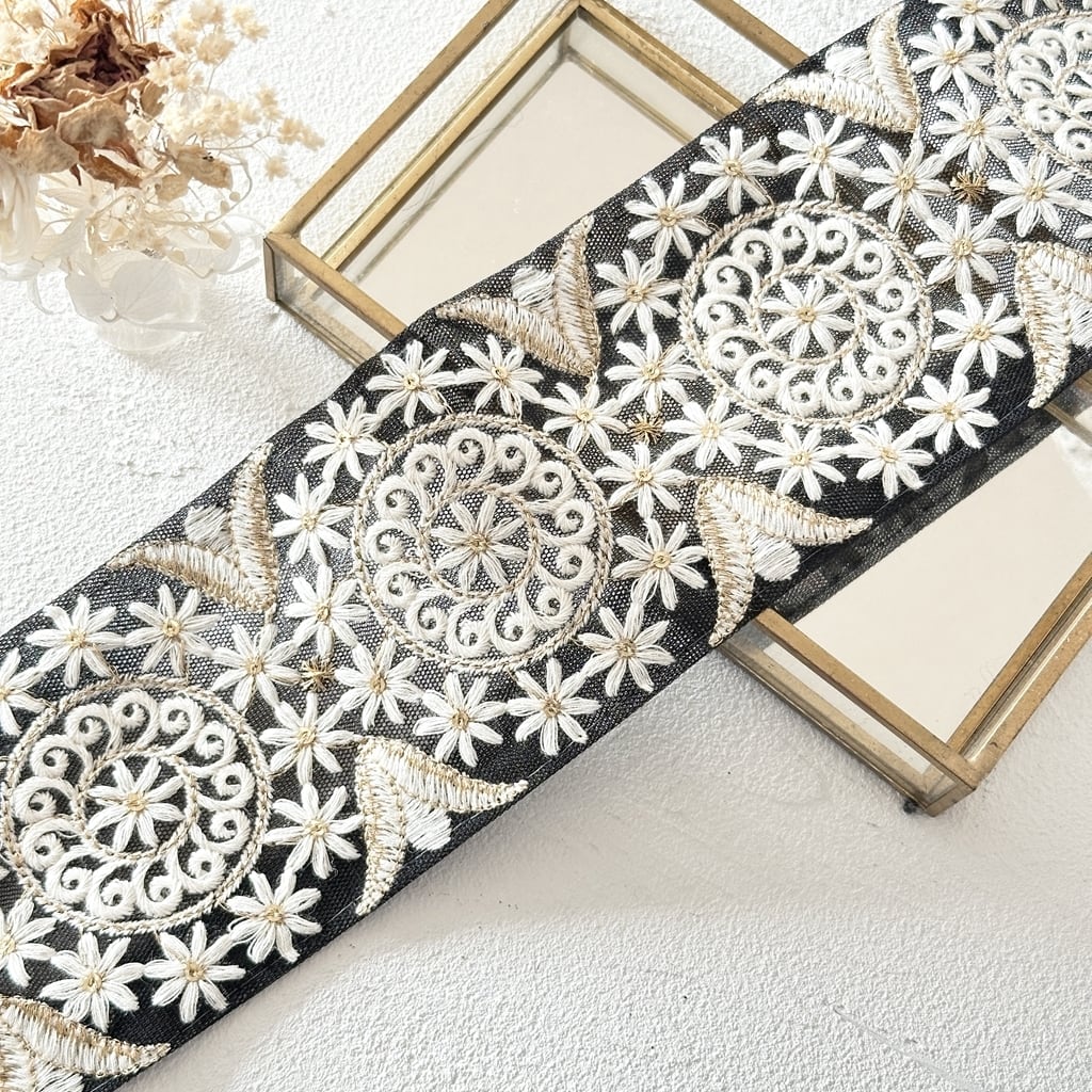 フローラルファンタジア [ホワイトブラック]インド刺繍リボン 1673