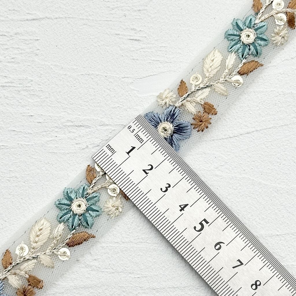 フラワーピュア [ライトブルー]インド刺繍リボン 1804