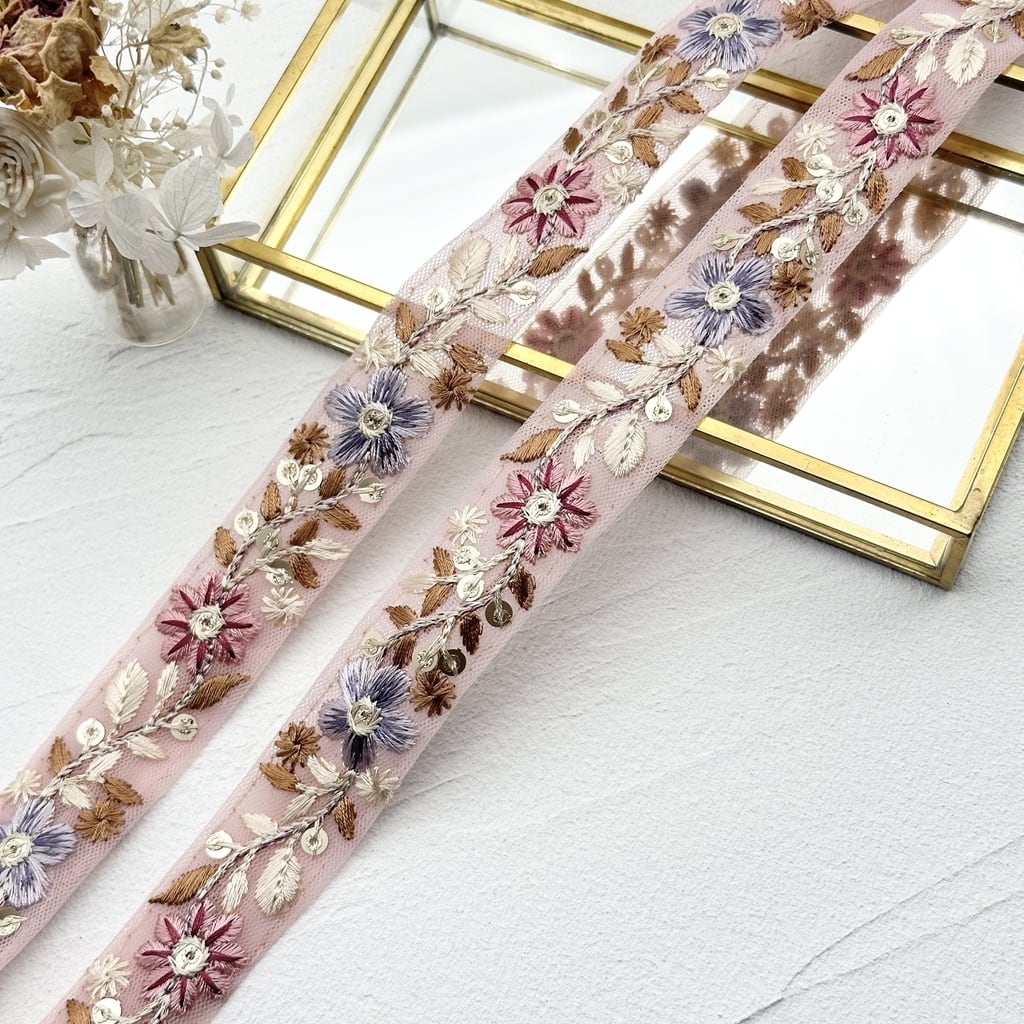 フラワーピュア [ピンク]※2.5mカット済み有り インド刺繍リボン 1806