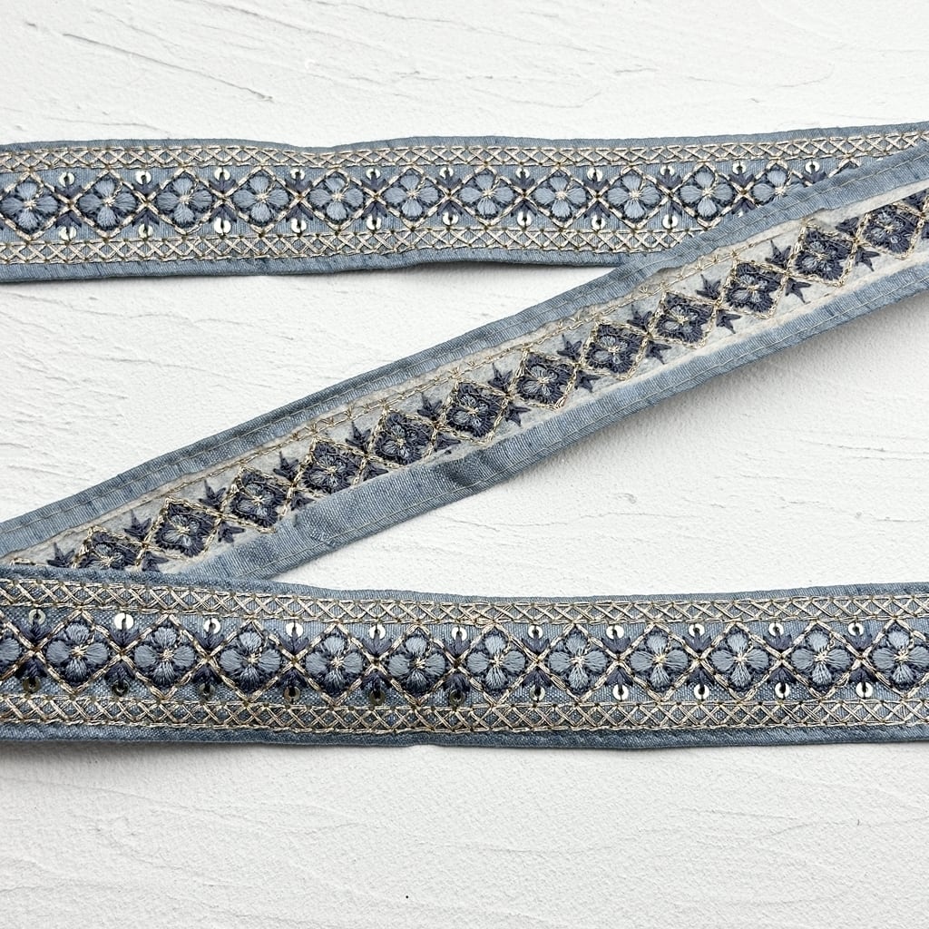 モザイクミニ [ブルー]※2mカット済み有り インド刺繍リボン 1882