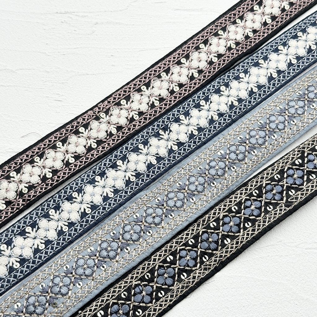 モザイクミニ [ホワイトネイビー]インド刺繍リボン 1883