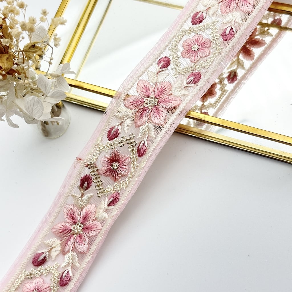1ロール パステルフローラル [ピンク]インド刺繍リボン 1651-R