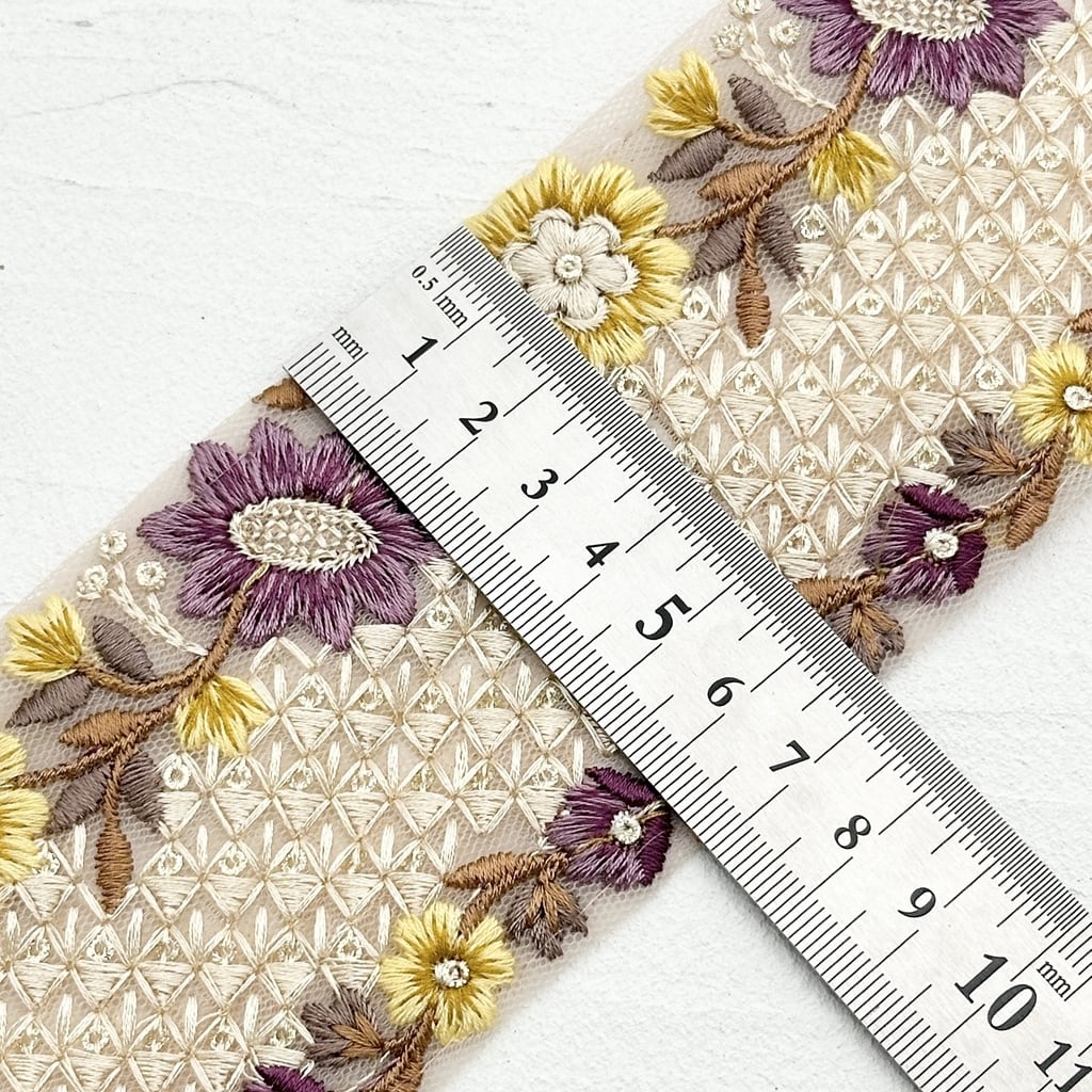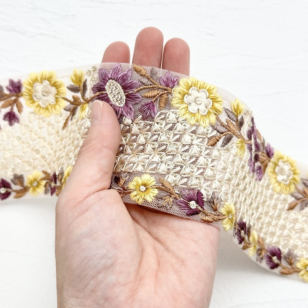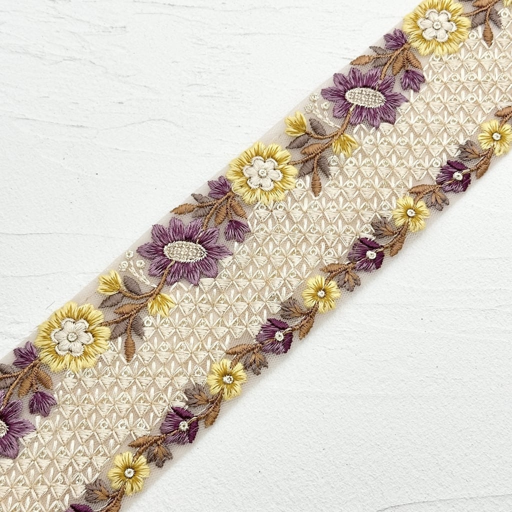 カラフルユートピア [パープルイエロー]インド刺繍リボン 1946