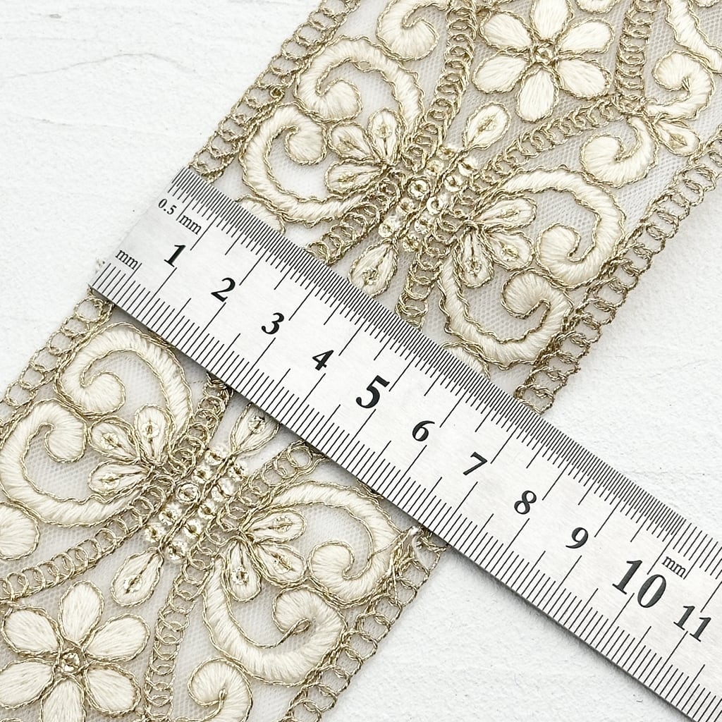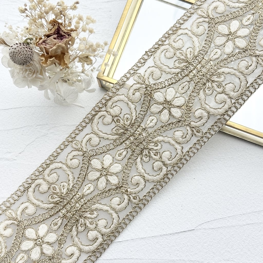 再入荷 ロイヤルブリリアンス [アイボリー]インド刺繍リボン 1957