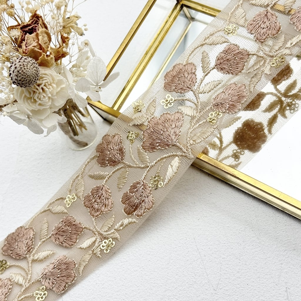 フィールド. [ピンクベージュ]※1m 50cmカット済み有り インド刺繍リボン 1969