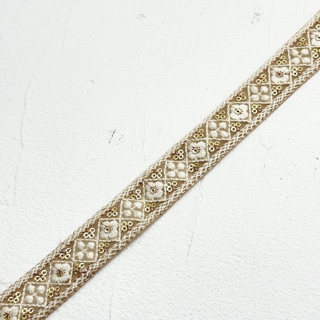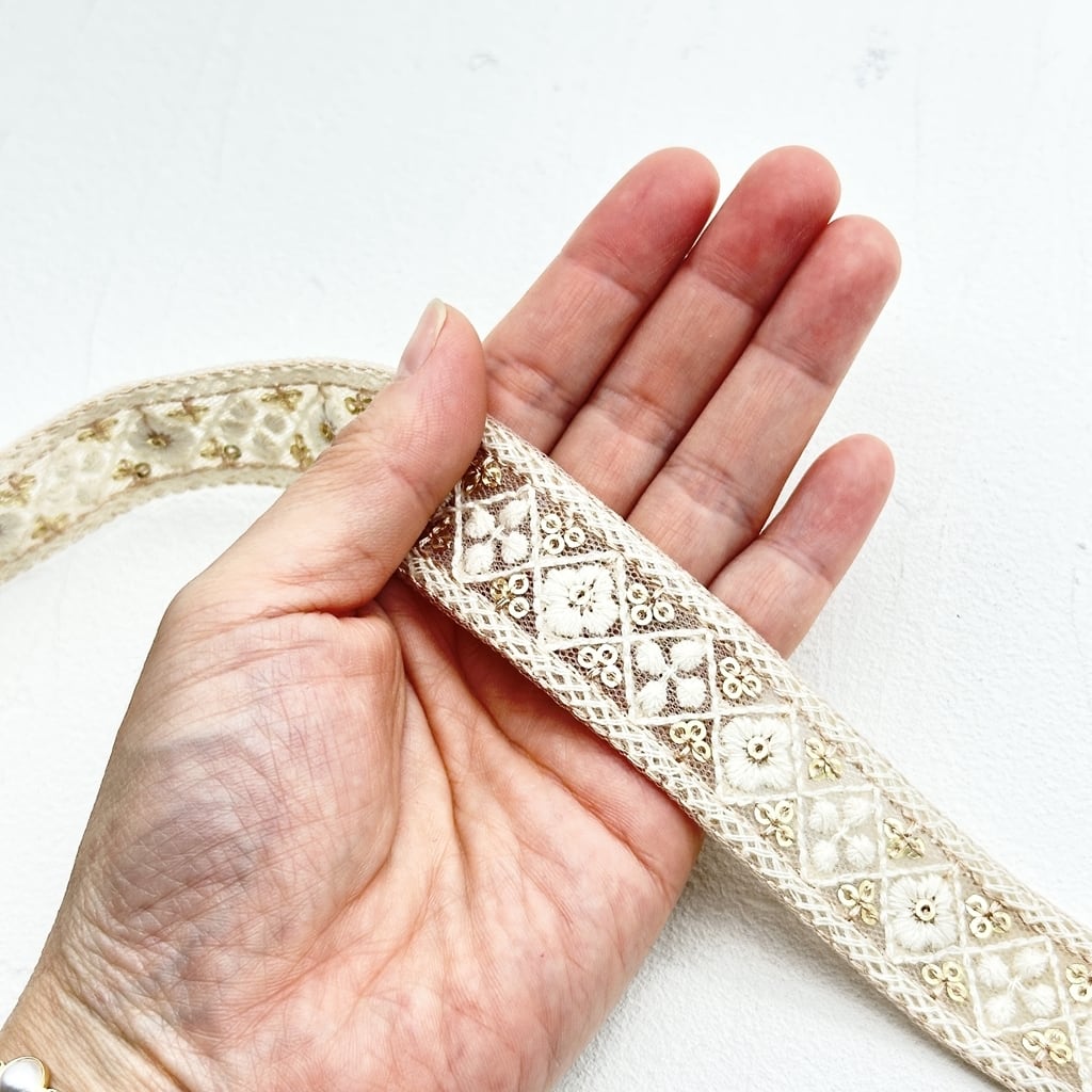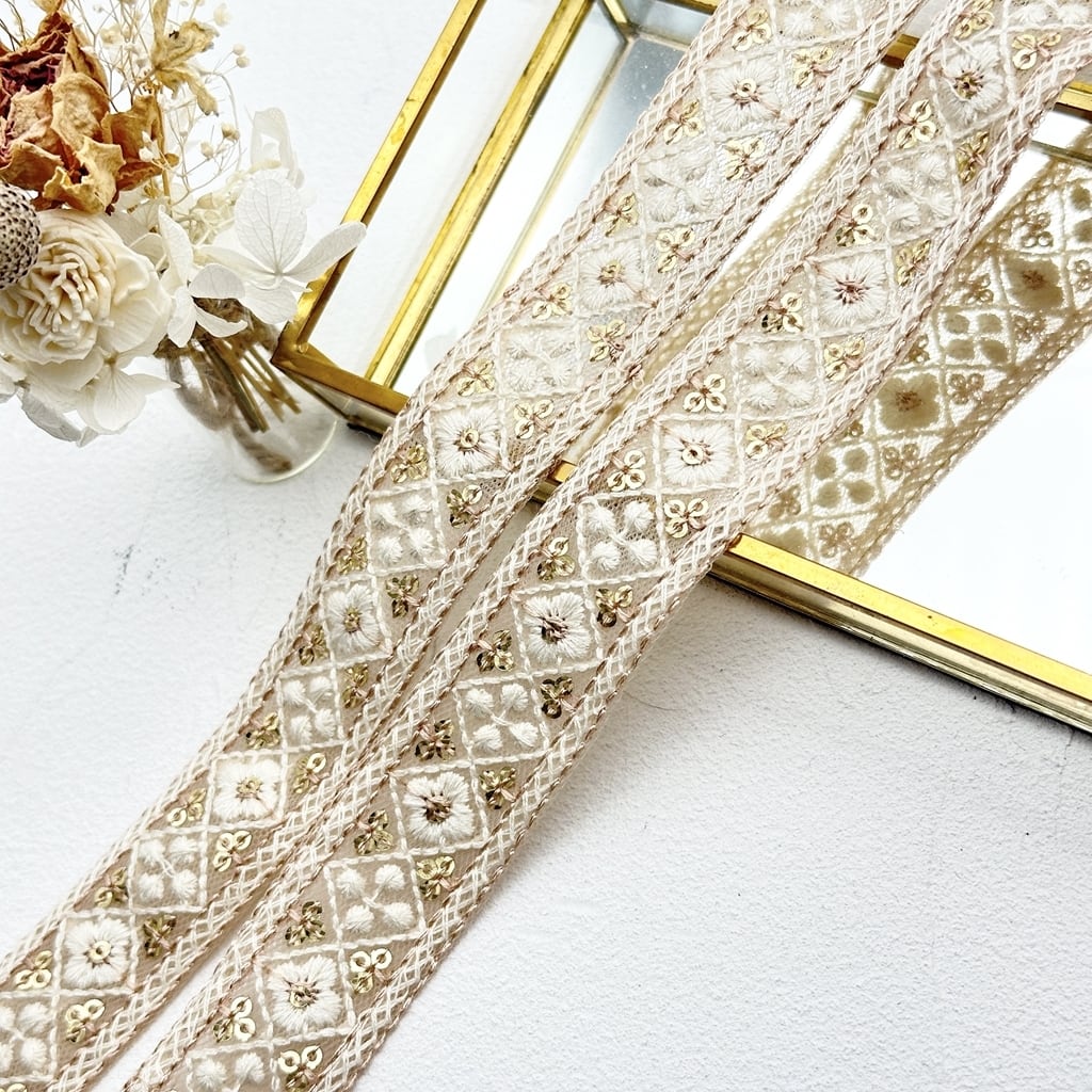 ホワイトドリーム[ピンクベージュ]インド刺繍リボン 1981