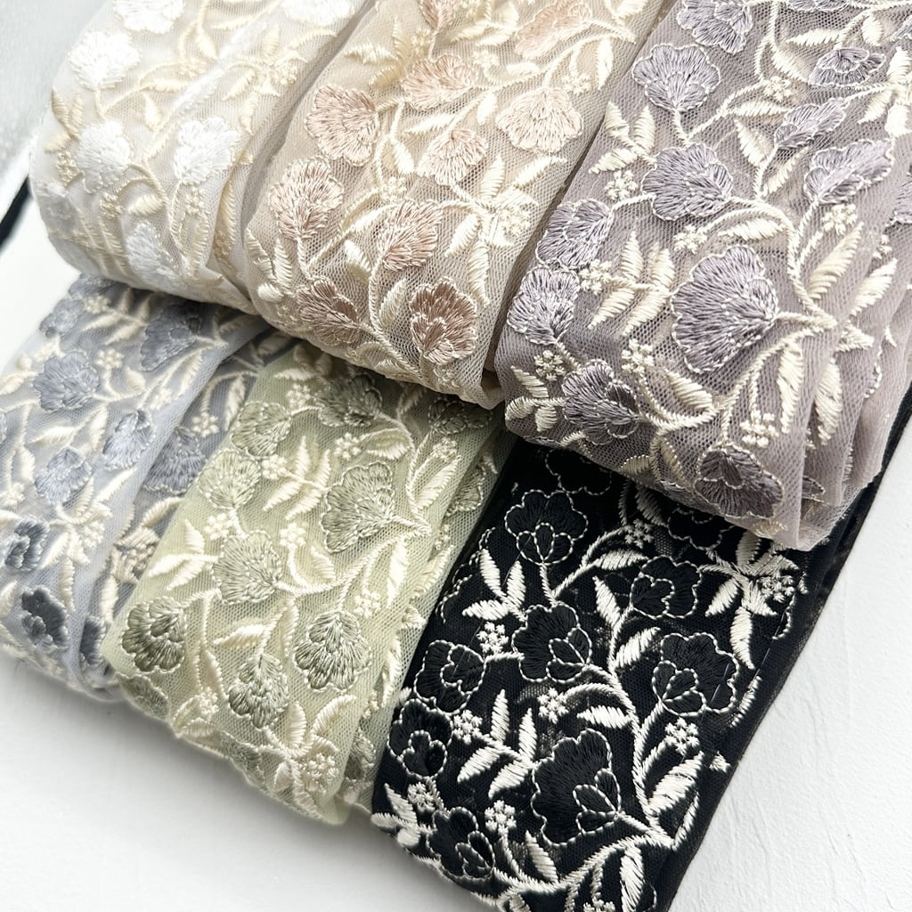 インド刺繍リボンは、細かい刺繍が施されていて色も鮮やかなリボンです。