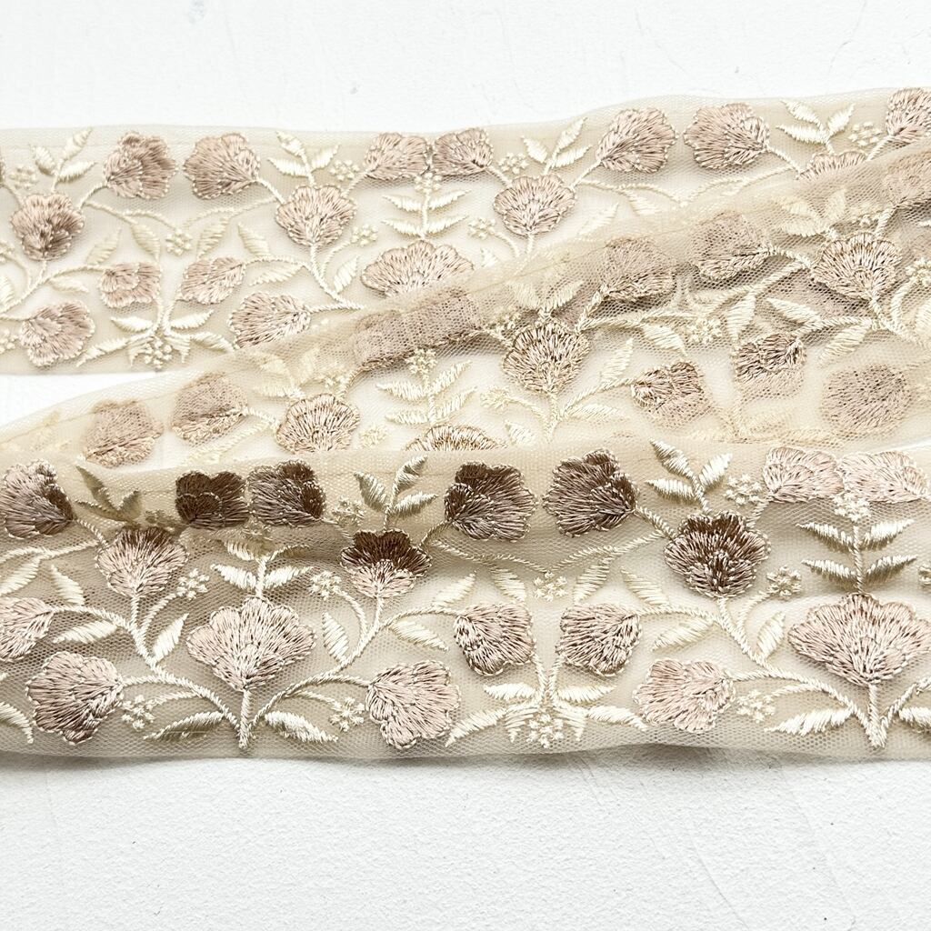 フィールドワイド [ピンクベージュ]インド刺繍リボン 1987