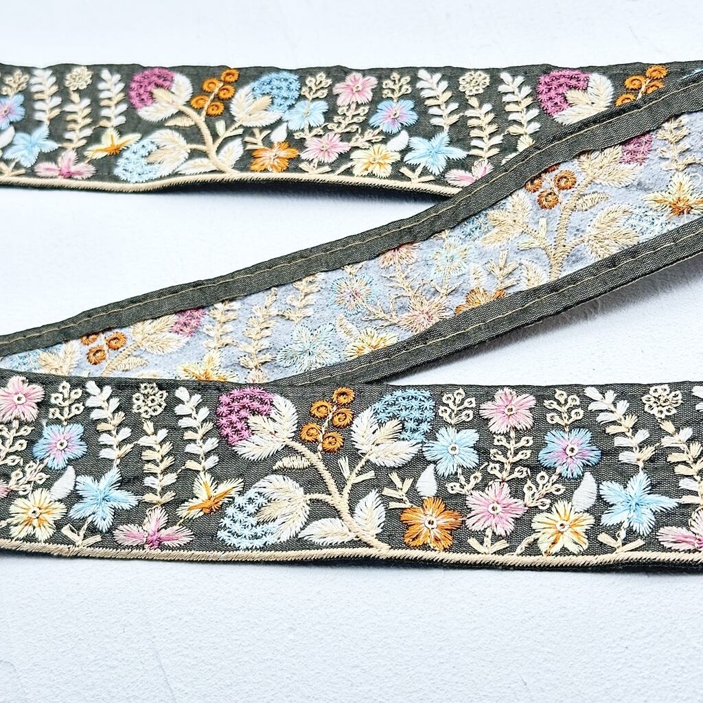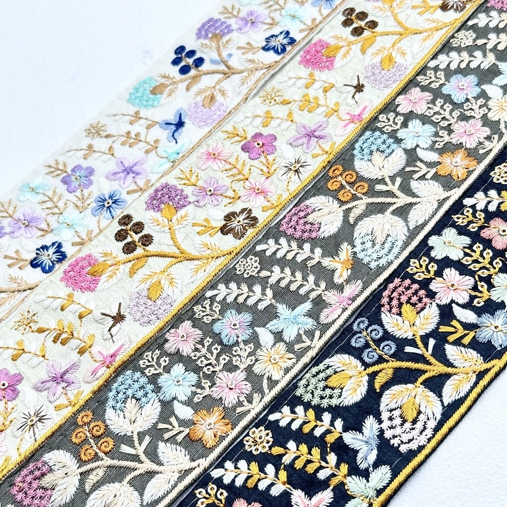 インド刺繍リボンは、細かい刺繍が施されていて色も鮮やかなリボンです。