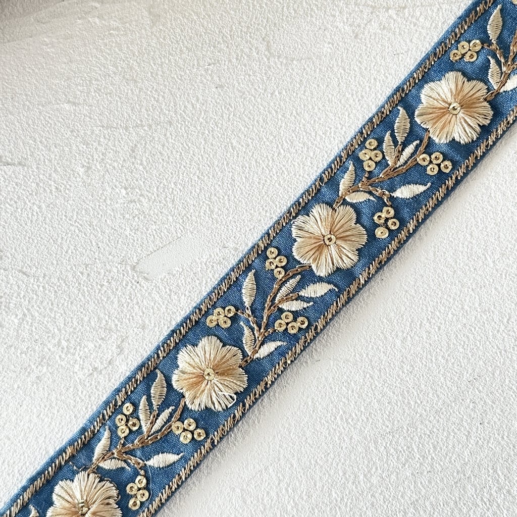 1ロール シックシンフォニー[ブルー]インド刺繍リボン 1520-1R