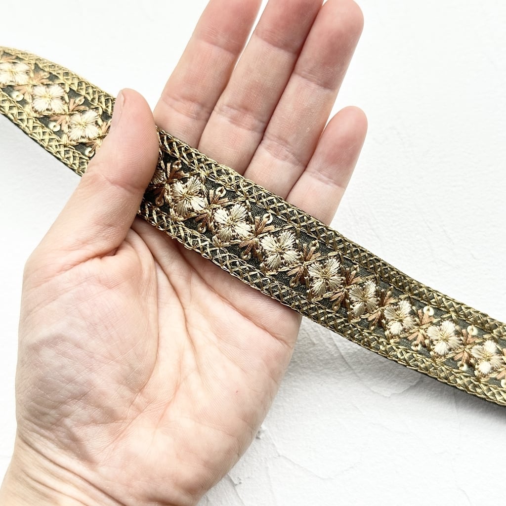 モザイクミニ [カーキ]インド刺繍リボン 2102