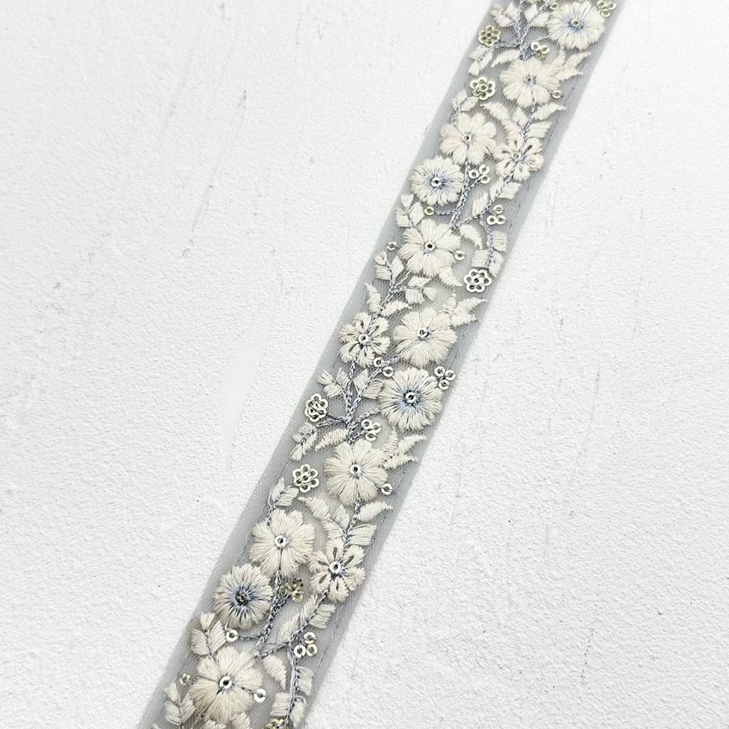 プレシャス[くすみブルー]インド刺繍リボン 2137