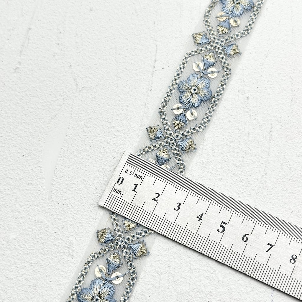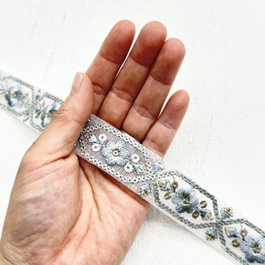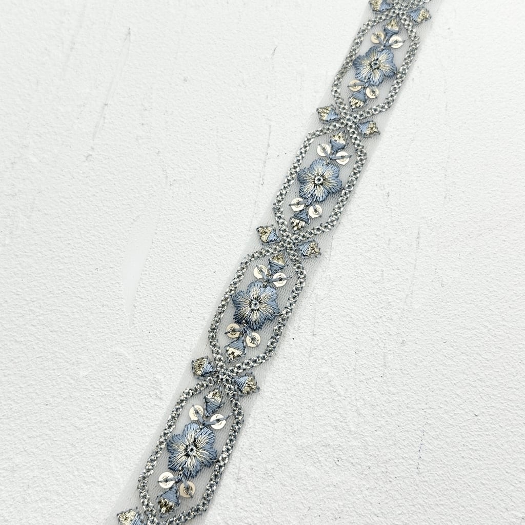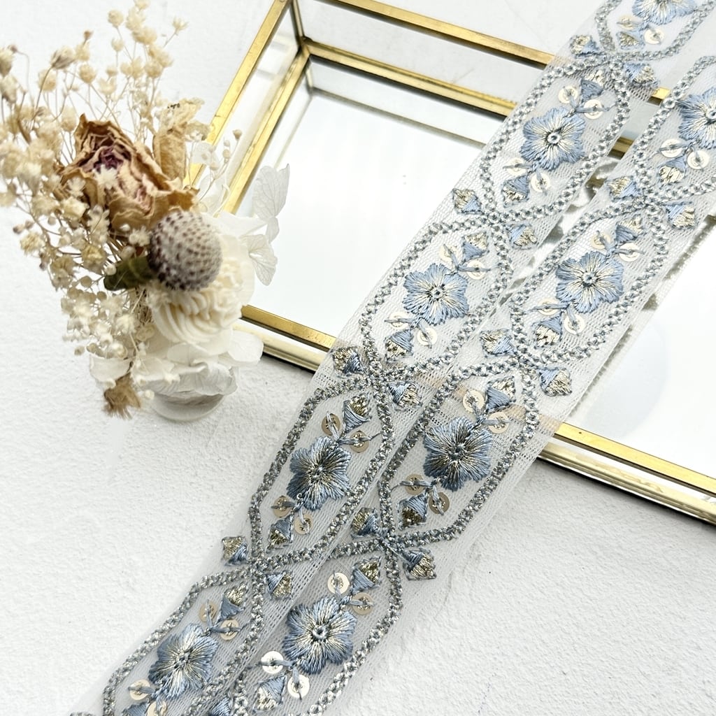 ムーンライト[サックス]インド刺繍リボン 2145