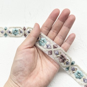 パステルシャイン[ブルーパープル]インド刺繍リボン 2163