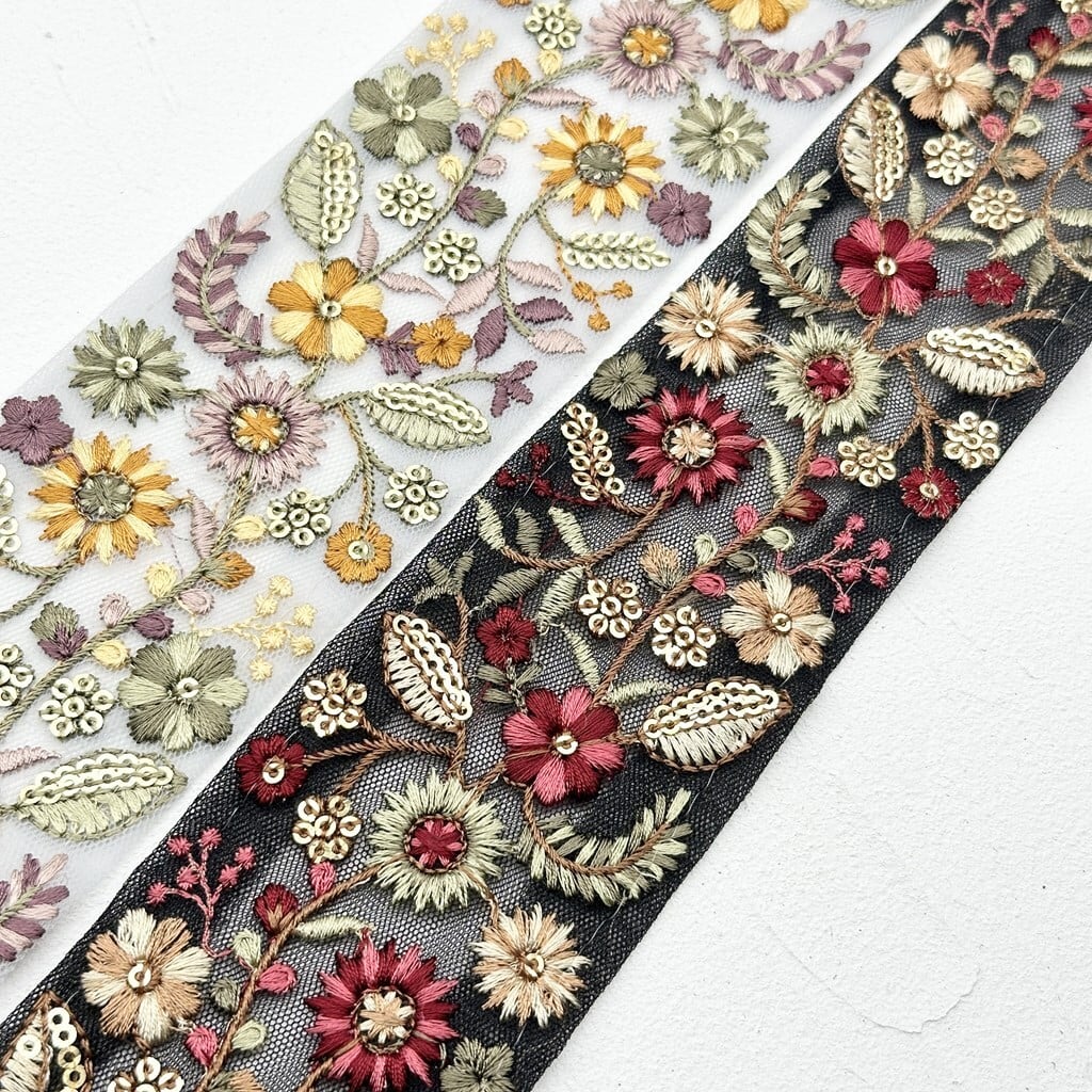 インド刺繍リボンは、細かい刺繍が施されていて色も鮮やかなリボンです。
