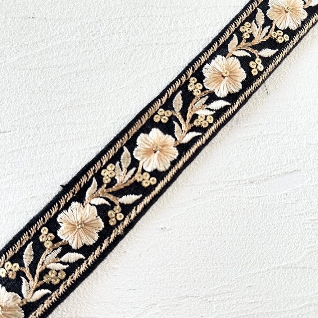 1ロール シックシンフォニー[ブラック]インド刺繍リボン 1521-1R