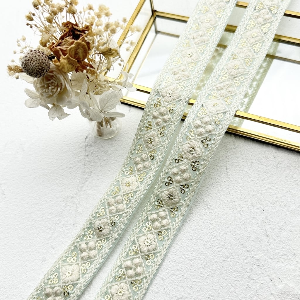 ホワイトドリーム [ミント]インド刺繍リボン 2174