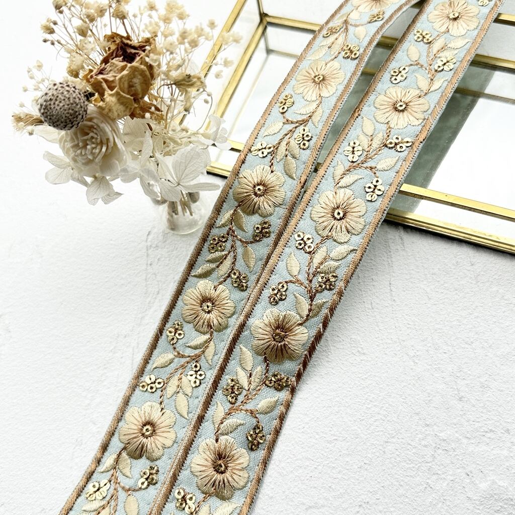 シックシンフォニー [ライトブルー]インド刺繍リボン 2186☆