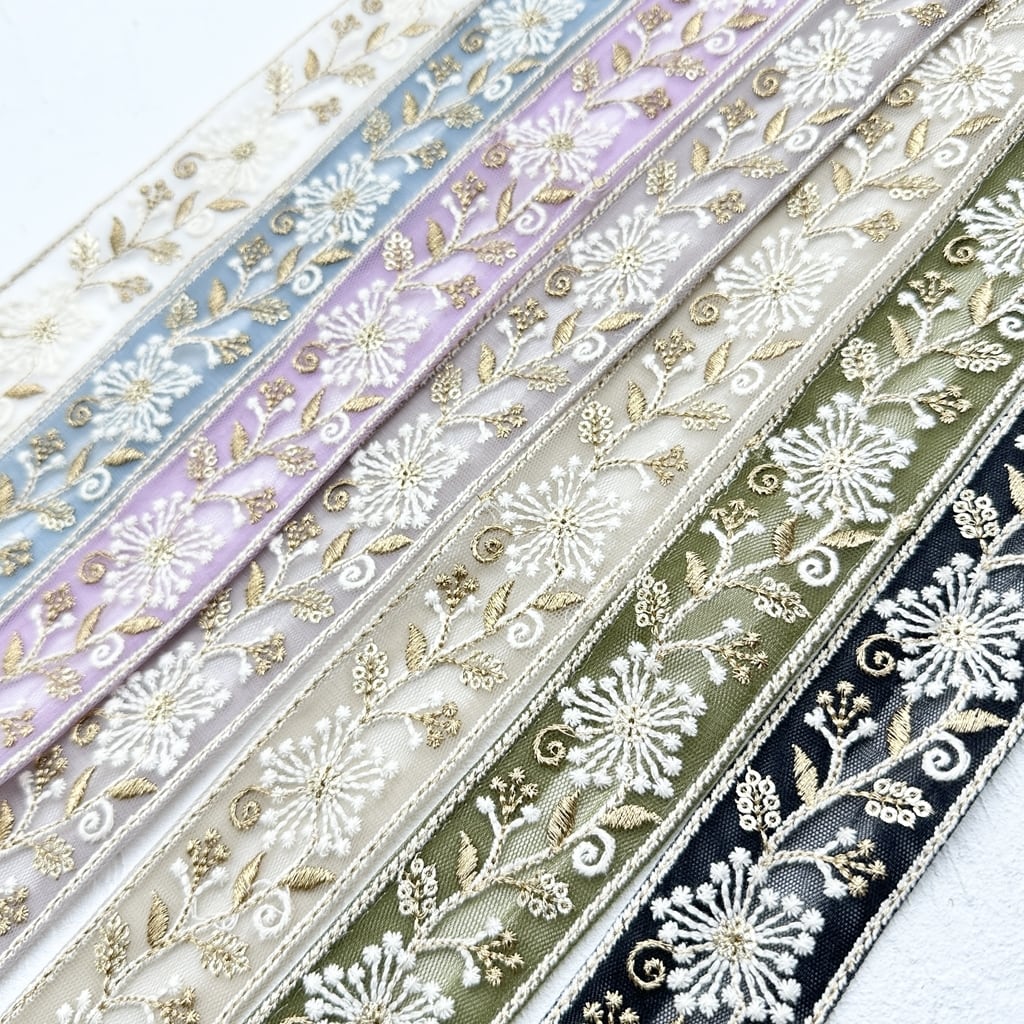 インド刺繍リボンは、細かい刺繍が施されていて色も鮮やかなリボンです。