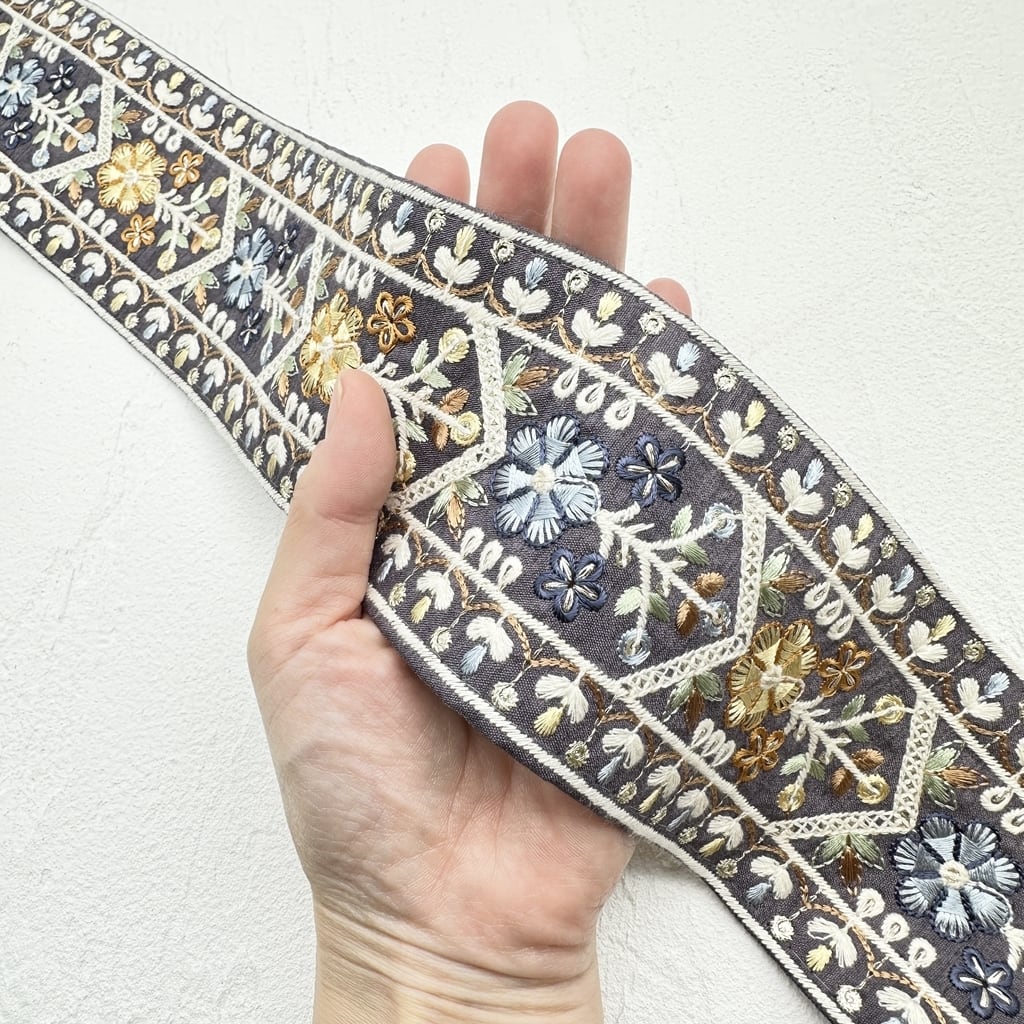 インド刺繍リボンは、細かい刺繍が施されていて色も鮮やかなリボンです。