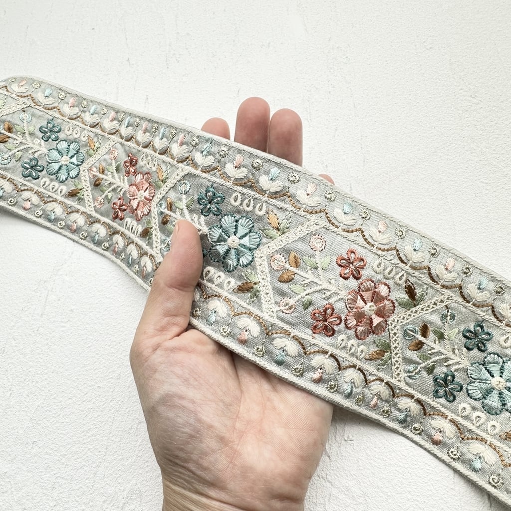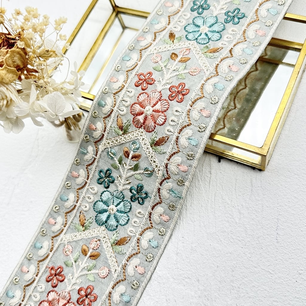 ハッピースプリンクル[グレージュ]インド刺繍リボン 2212