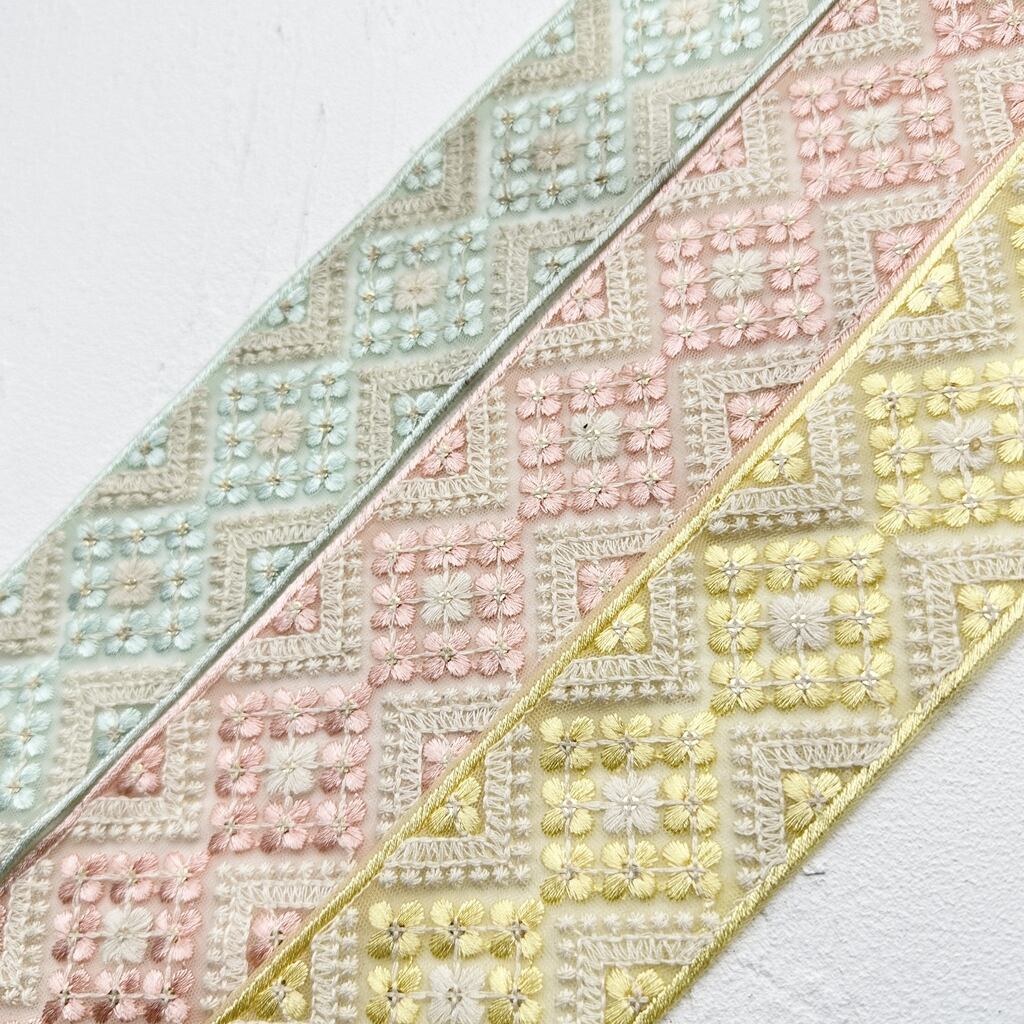 インド刺繍リボンは、細かい刺繍が施されていて色も鮮やかなリボンです。