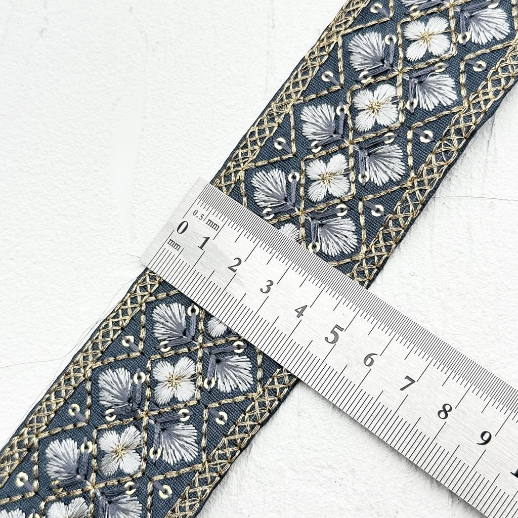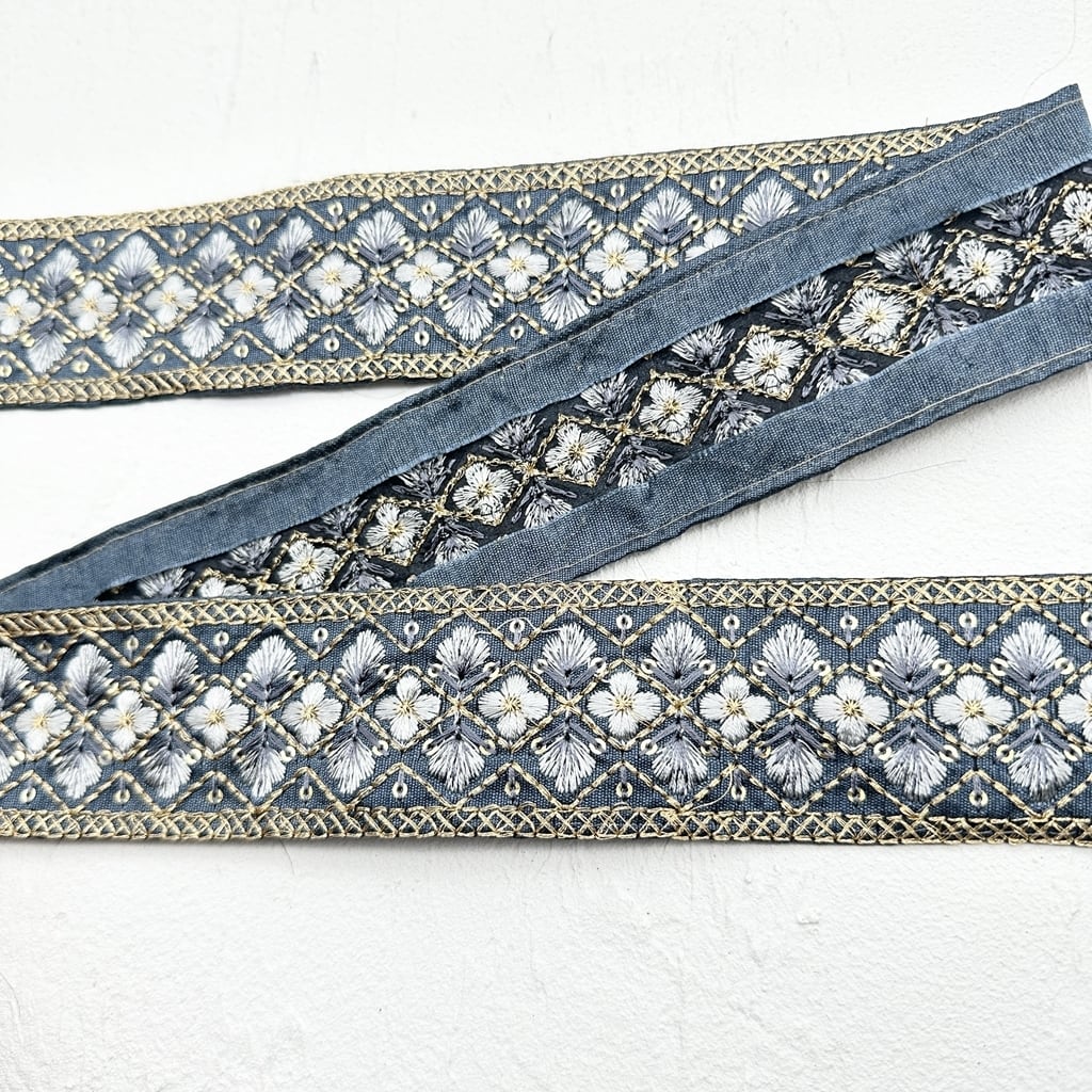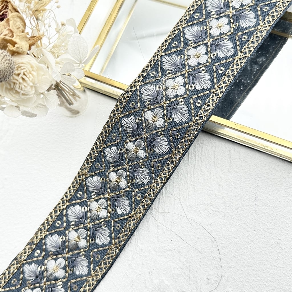 モザイク[くすみブルー]インド刺繍リボン 2246