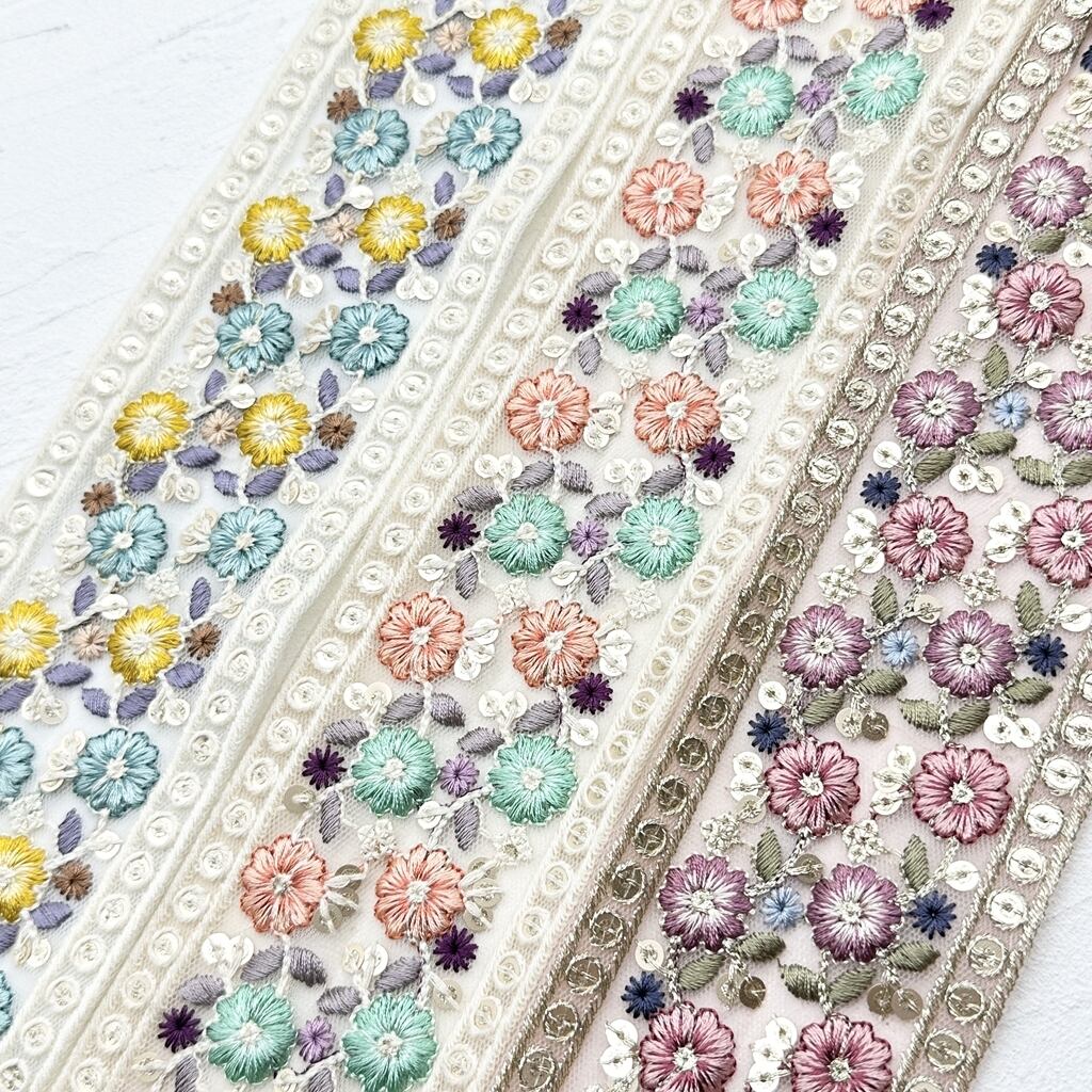インド刺繍リボンは、細かい刺繍が施されていて色も鮮やかなリボンです。