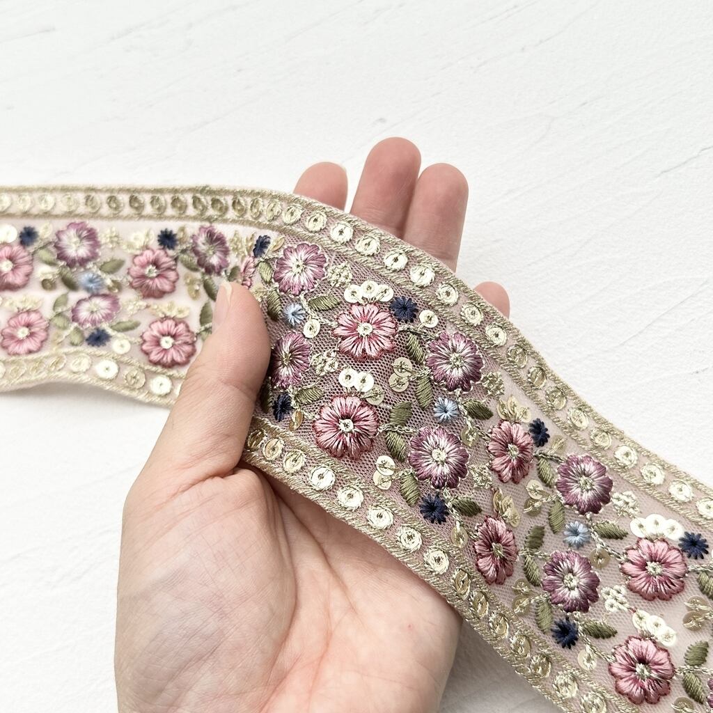 エアリー. [グレープピンク]インド刺繍リボン 2270☆