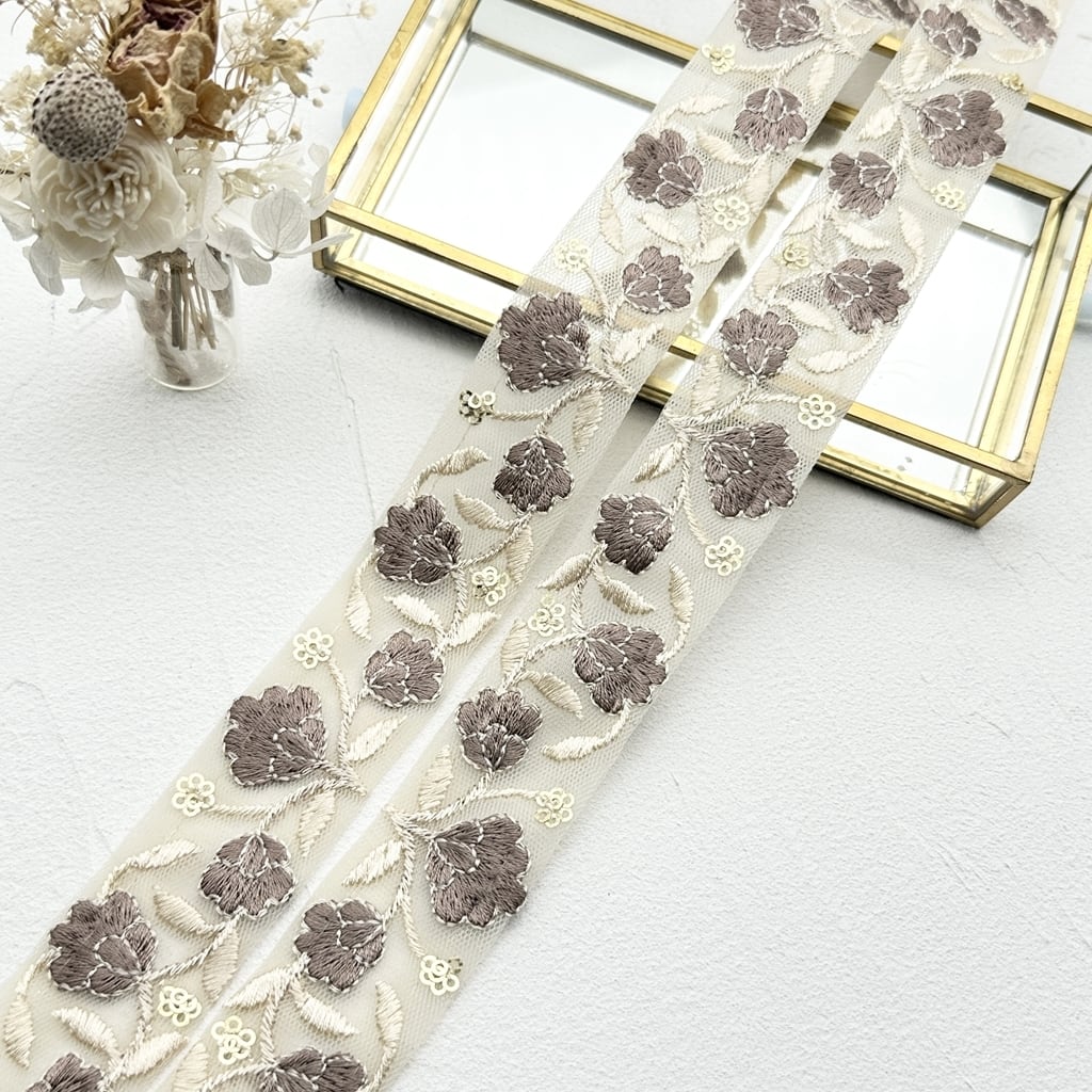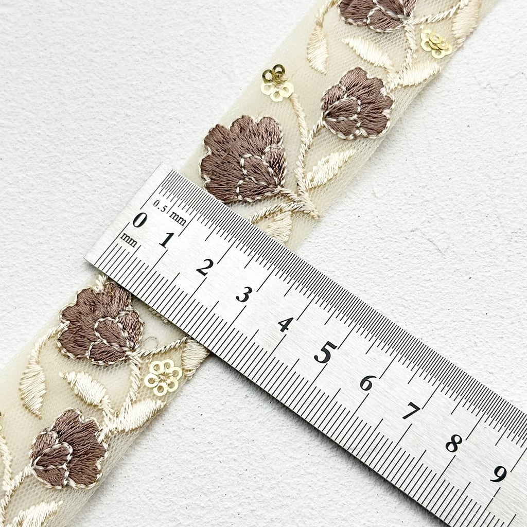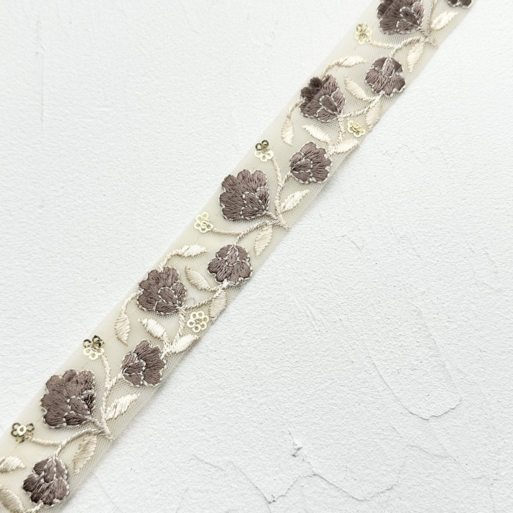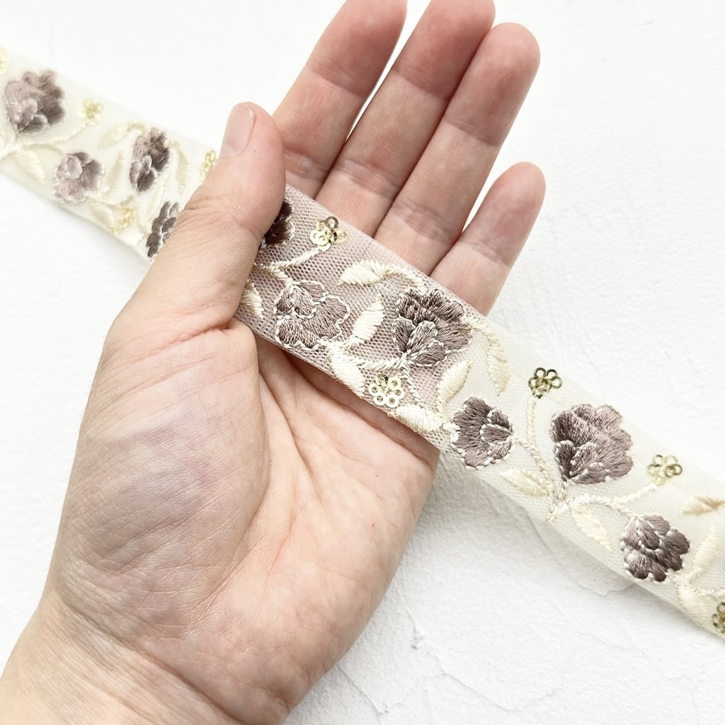 1ロール フィールドスリム [モカ]インド刺繍リボン 2125-1R