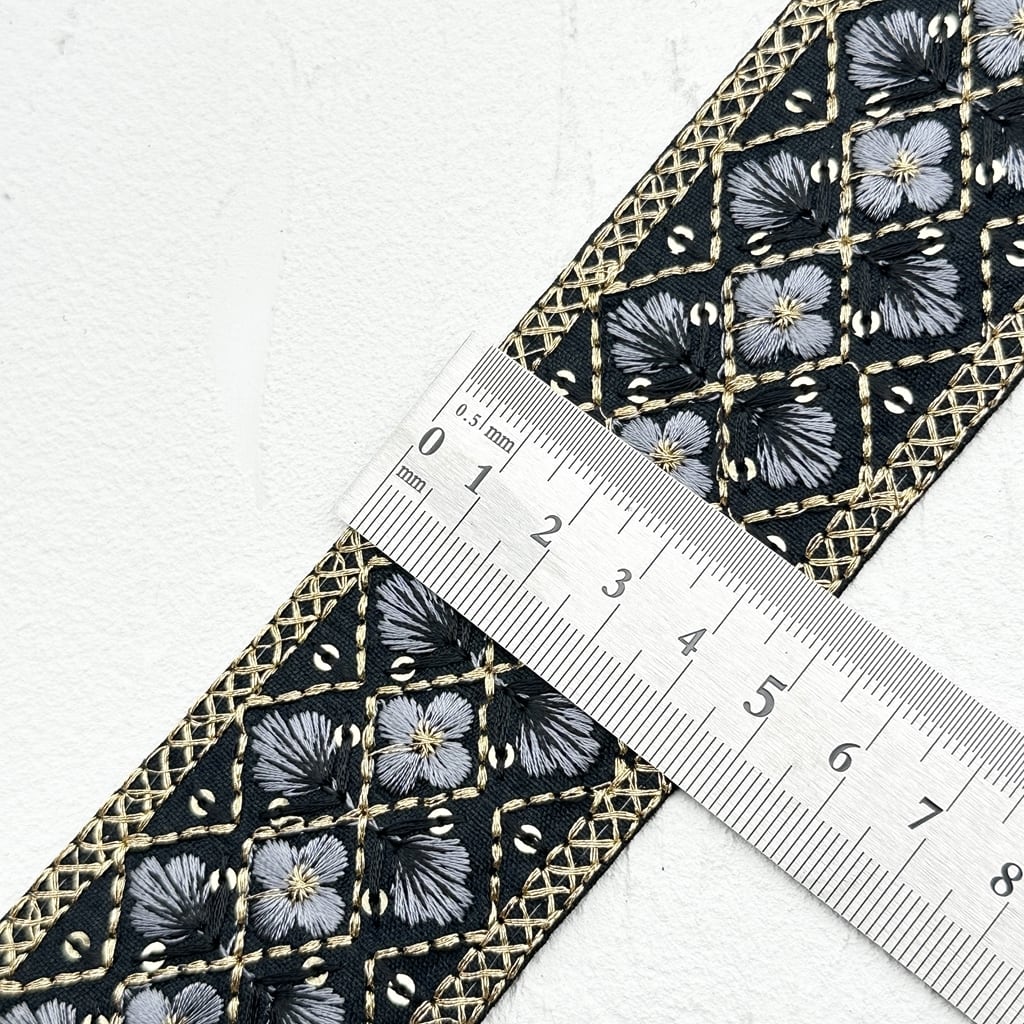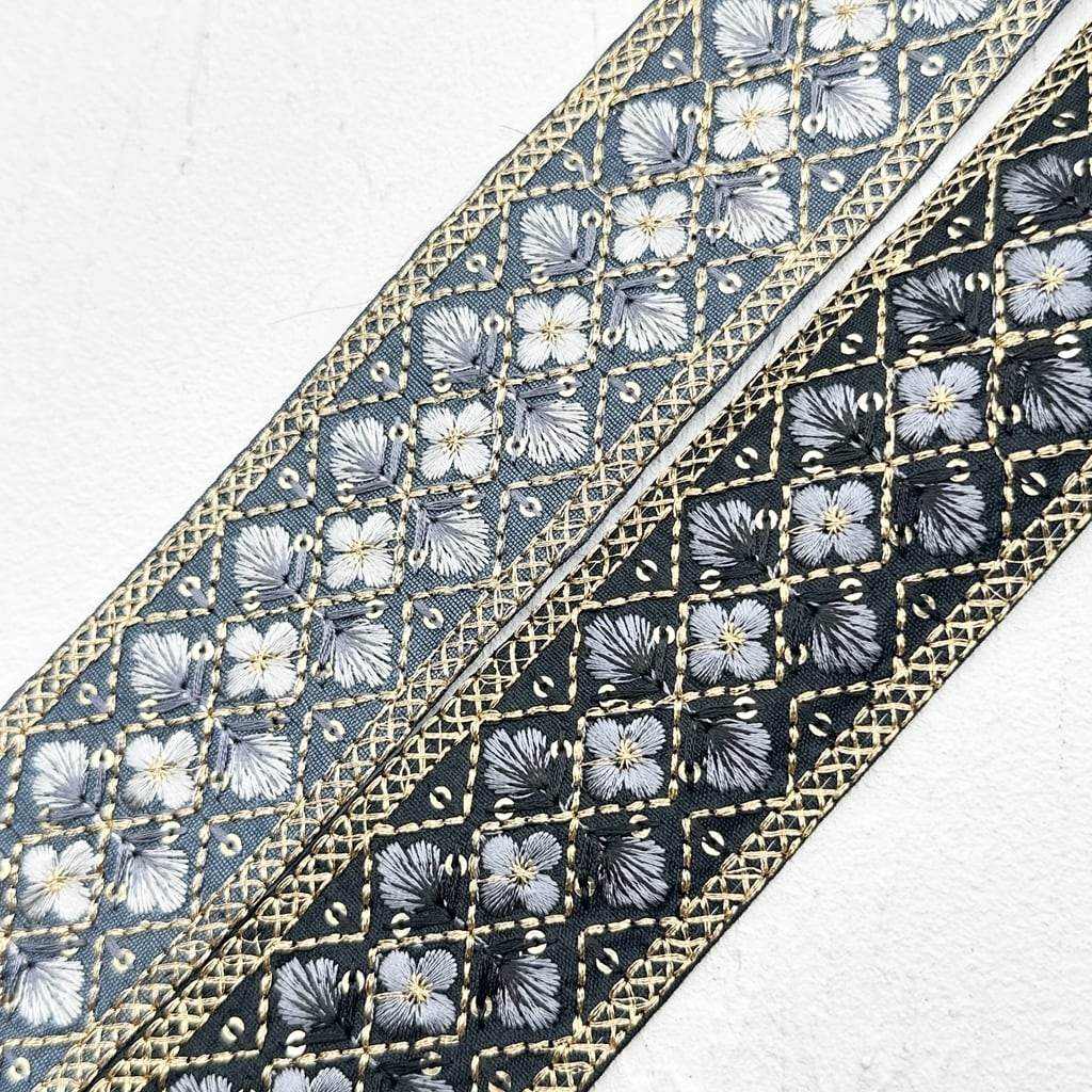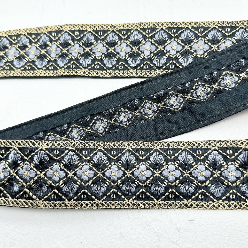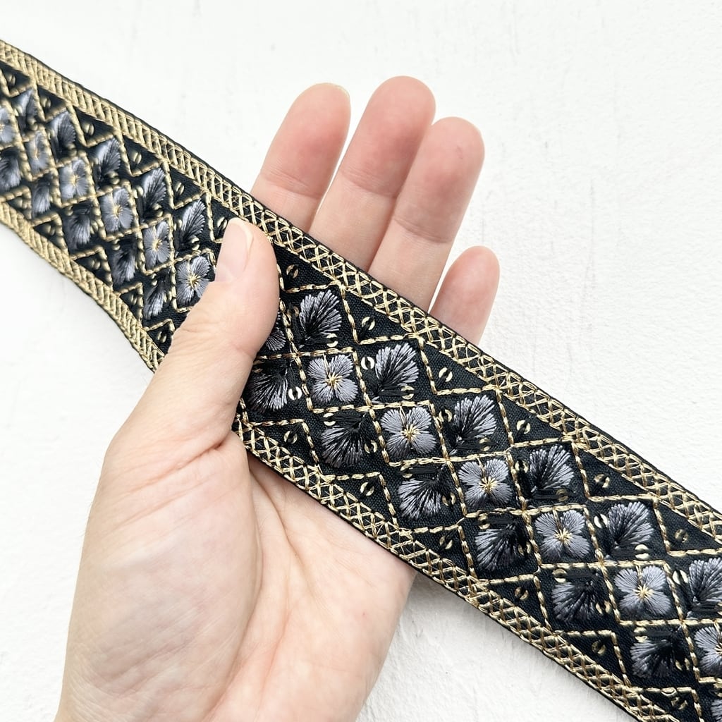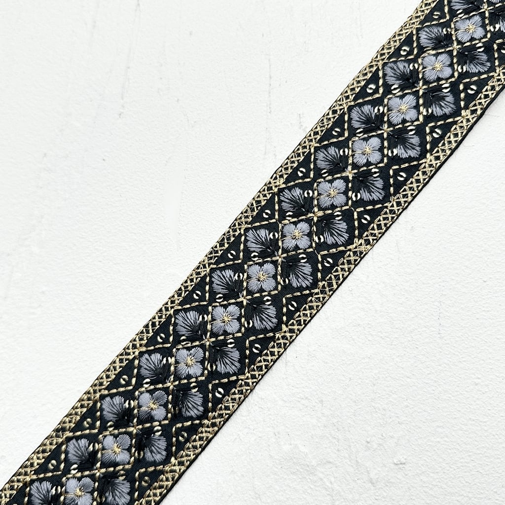 1ロール モザイク[ブラック]インド刺繍リボン 2245-1R