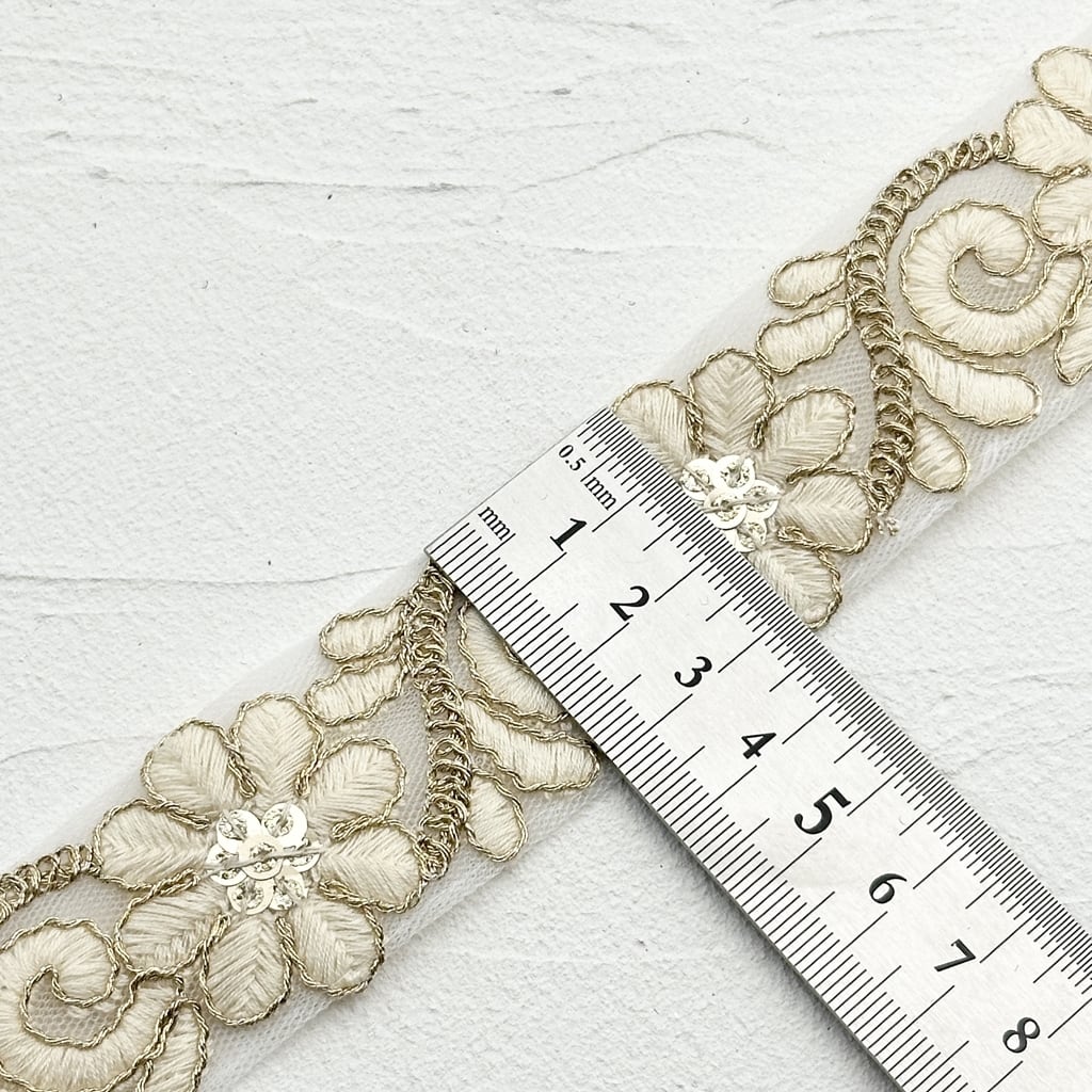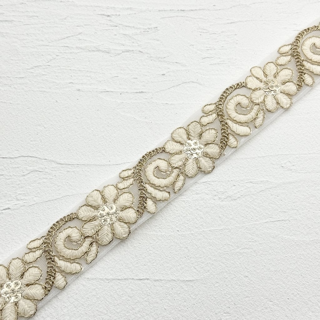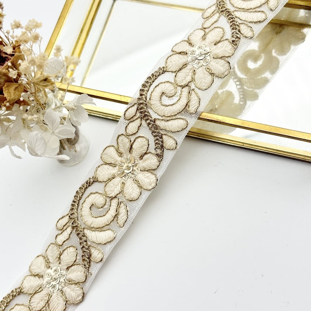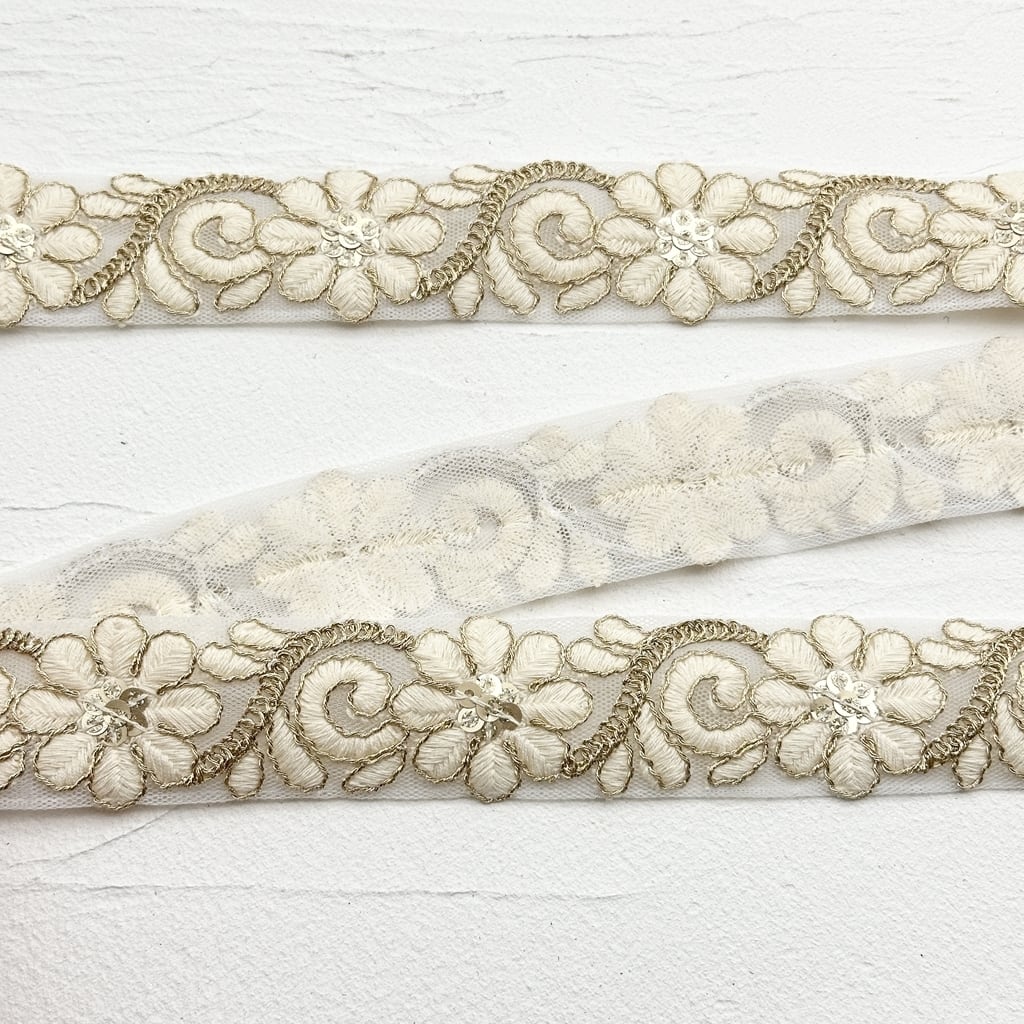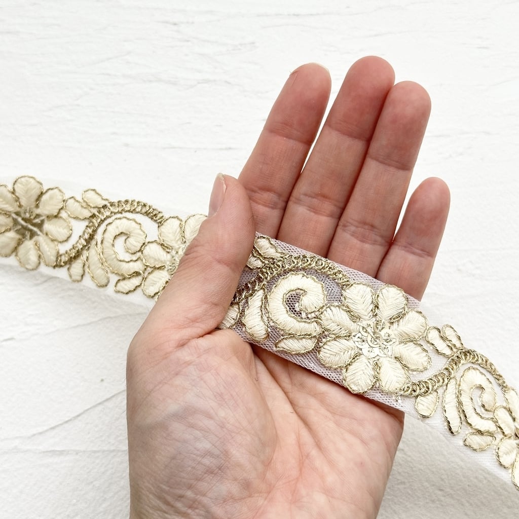 1ロール ロイヤルスリム [ホワイト]インド刺繍リボン 1607-1R