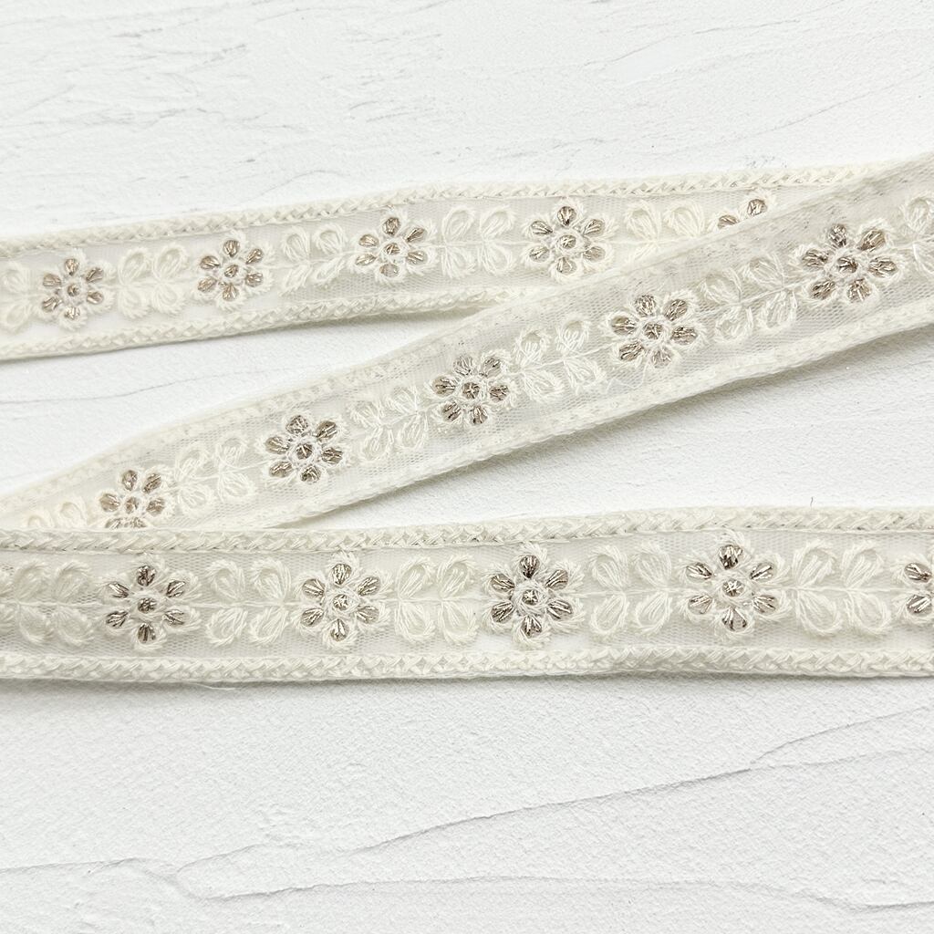 ソフトフローレス [アイボリー]インド刺繍リボン 2302