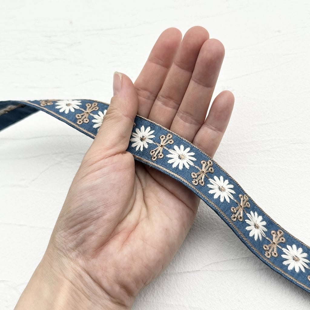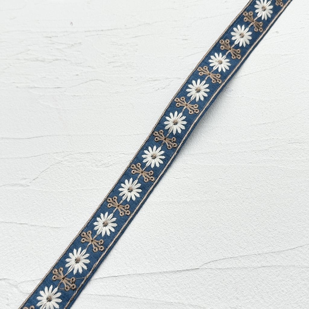 デイジークロス [ネイビー]インド刺繍リボン 2336