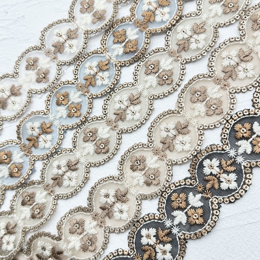 インド刺繍リボンは、細かい刺繍が施されていて色も鮮やかなリボンです。