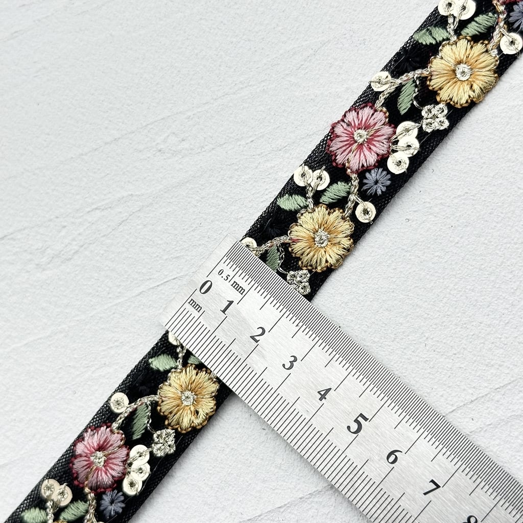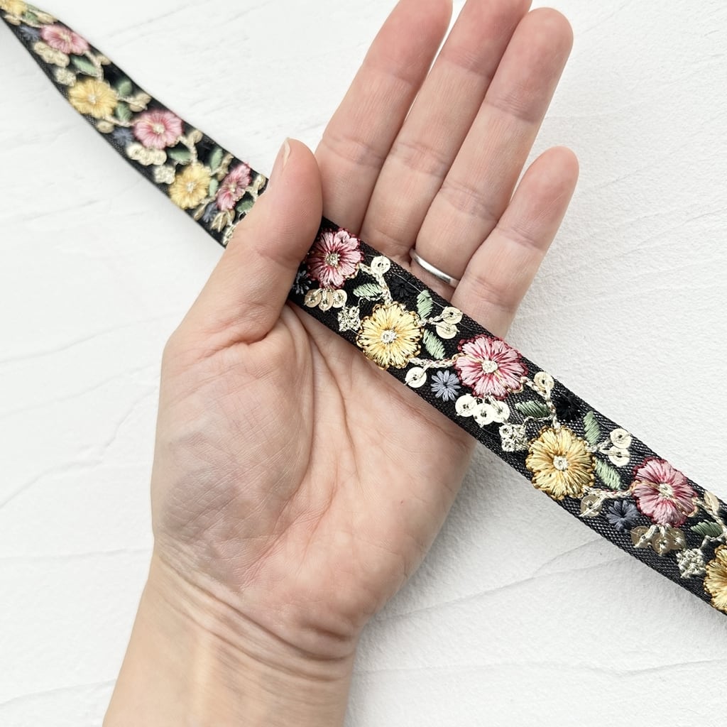 エアリースリム [ブラック]インド刺繍リボン 2372