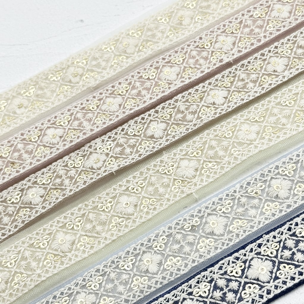 インド刺繍リボンは、細かい刺繍が施されていて色も鮮やかなリボンです。